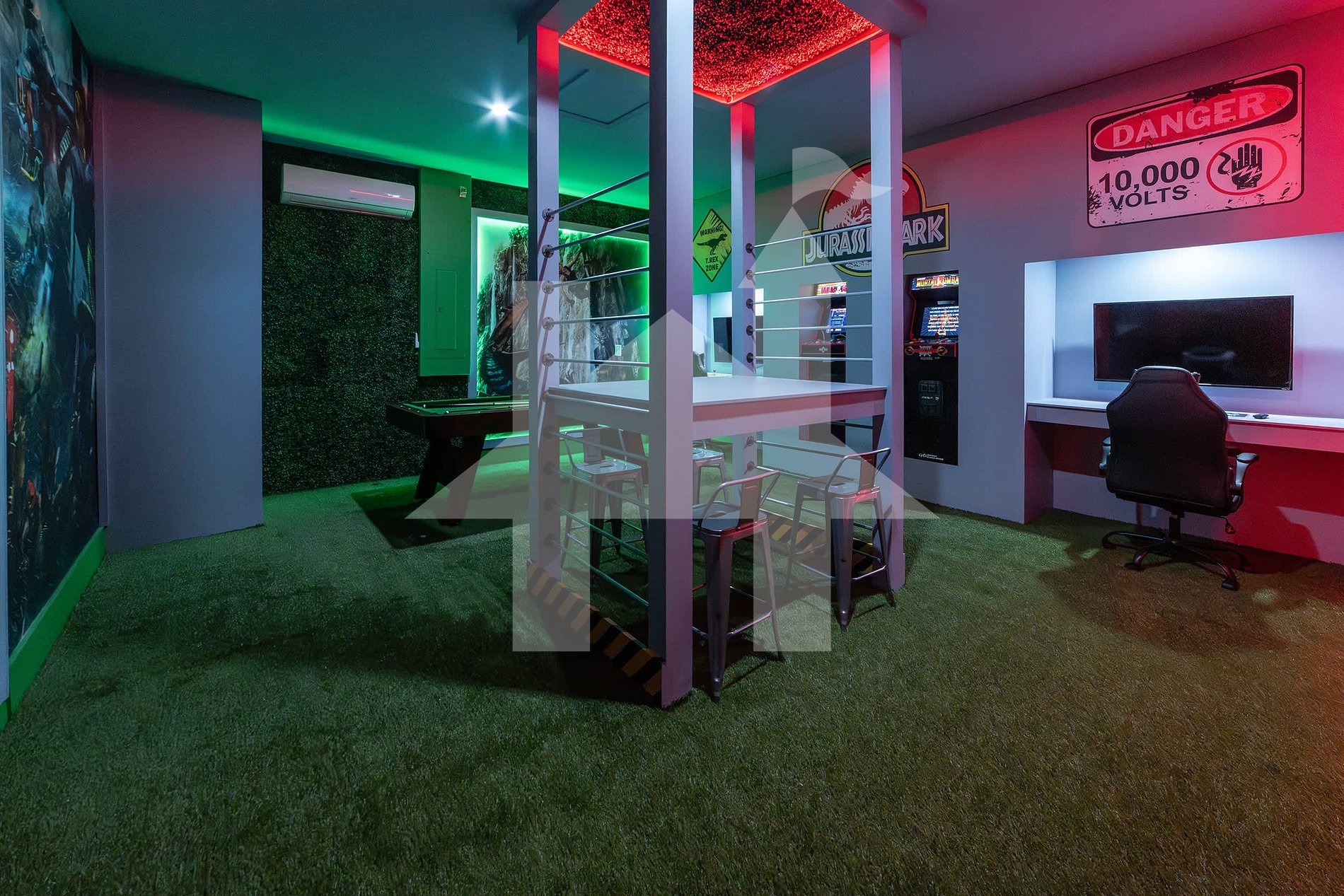 Descubra a estadia ideal em Orlando no Windsor Cay Resort! Esta casa de 5 quartos combina elegância e diversão para uma experiência imersiva na magia da Flórida. Com três quartos temáticos (Toy Story, Minions e Mickey), duas suítes king, game room com tema Jurassic Park e sala familiar inspirada em Simpsons, cada ambiente é inesquecível. Aproveite a piscina privativa e a cozinha externa para dias perfeitos com família e amigos.
