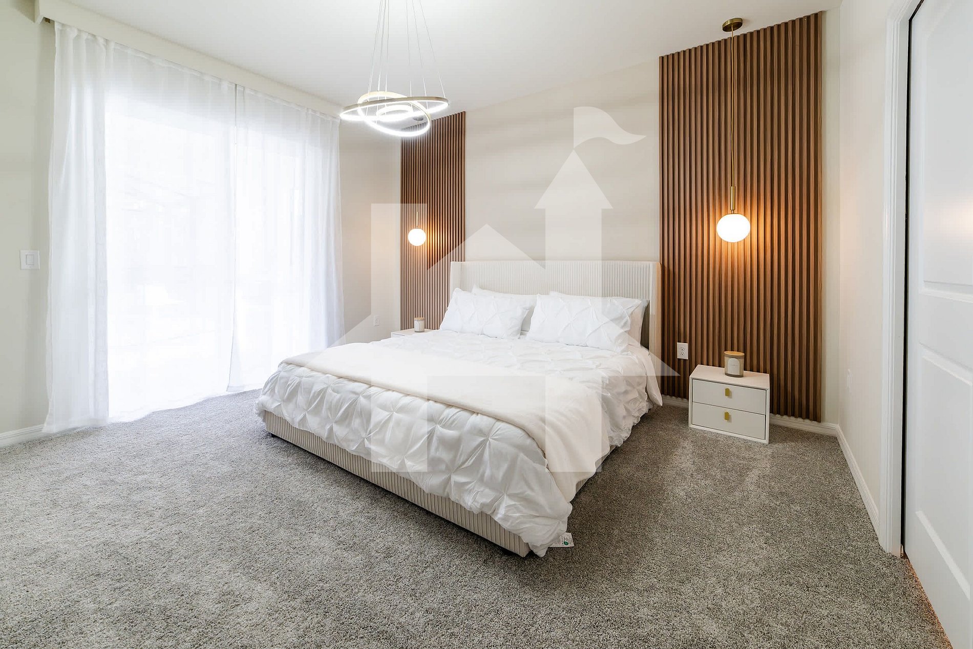 Suíte master luxuosa com cama king e banheiro privativo (Quarto 1)