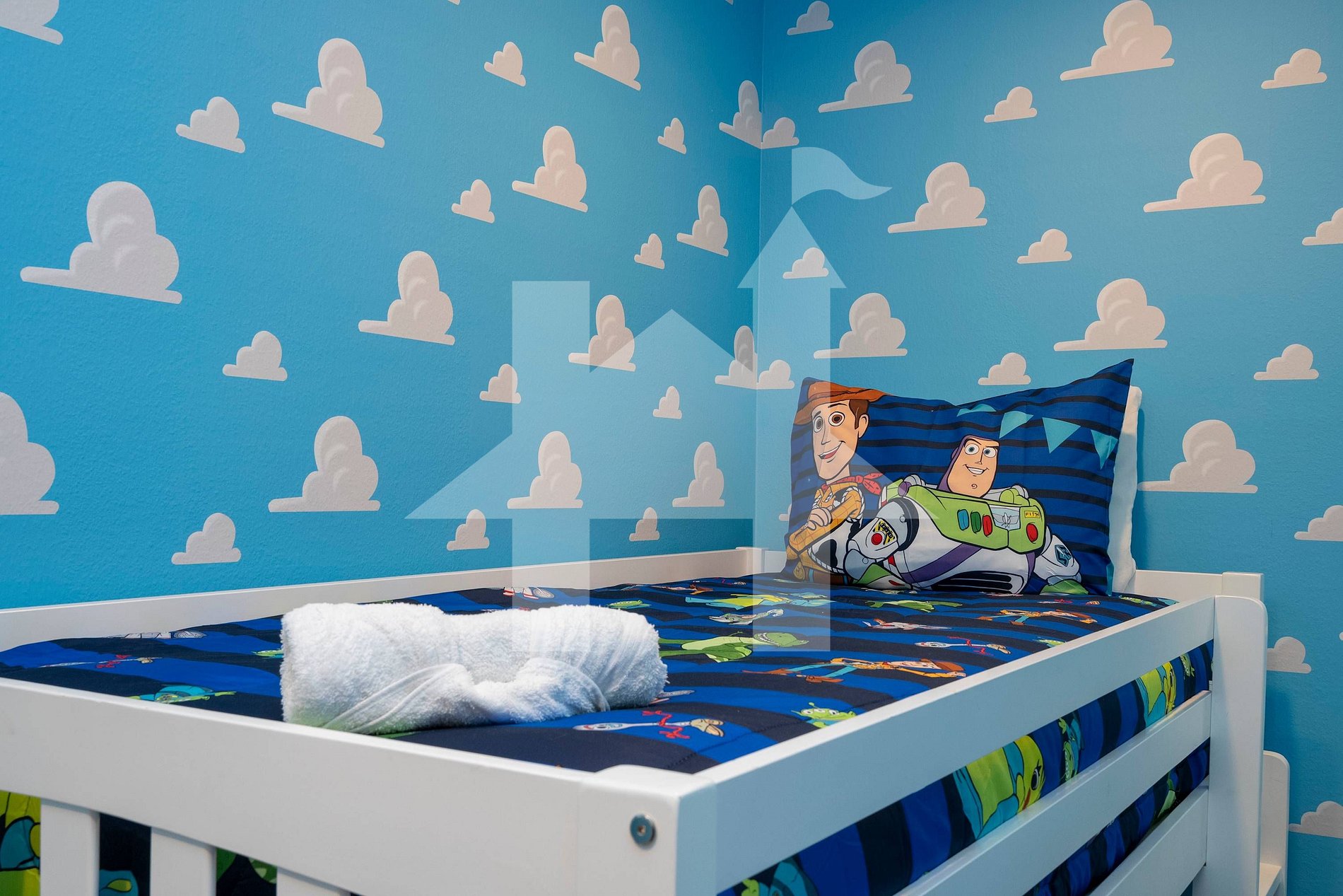 • Quarto temático Toy Story com beliche (duas camas de solteiro)