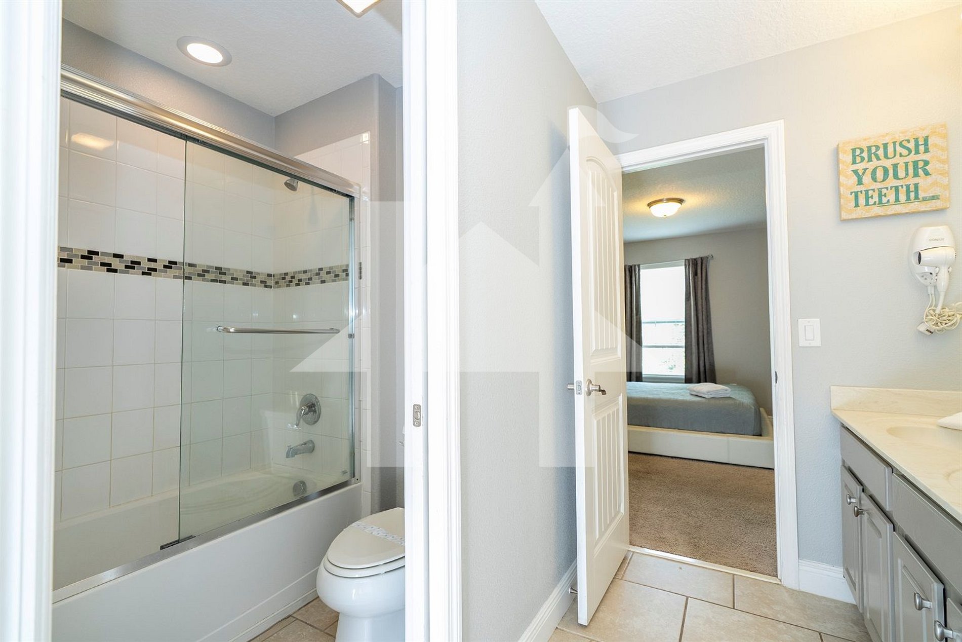 • Quarto 3: 1 cama de casal + 2 camas de solteiro (Jack and Jill com Quarto 4)