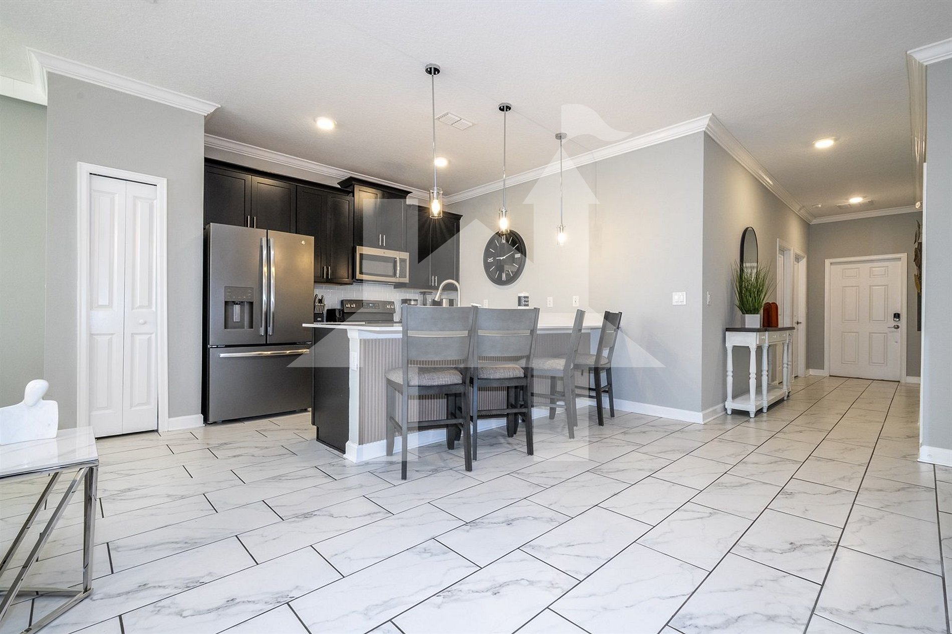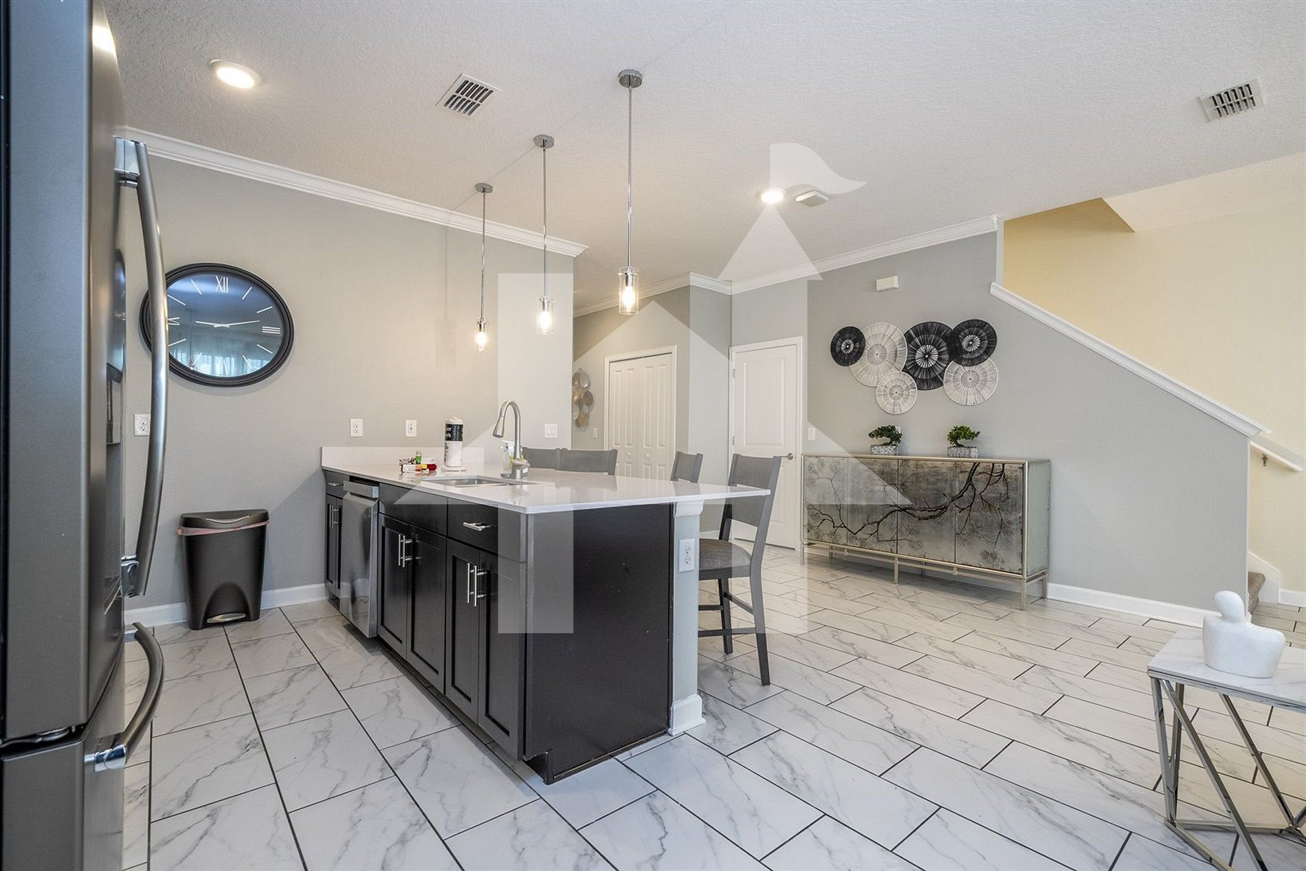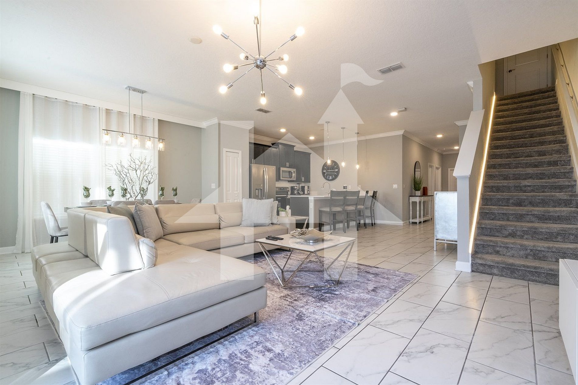 Venha ficar neste espaçoso townhome 5 quartos e 4 banheiros em Storey Lake — ~13 km da Disney e ~23 km da Universal Orlando! Acomoda até 13 hóspedes com duas suítes, área social aberta, piscina privativa com tela (aquecimento sob pedido), Wi‑Fi rápido, smart TVs, cozinha completa, lavanderia e estacionamento. Aproveite amenidades do resort: rio lento, toboáguas, área infantil, piscina aquecida, academia, mini‑golfe e tiki bar.