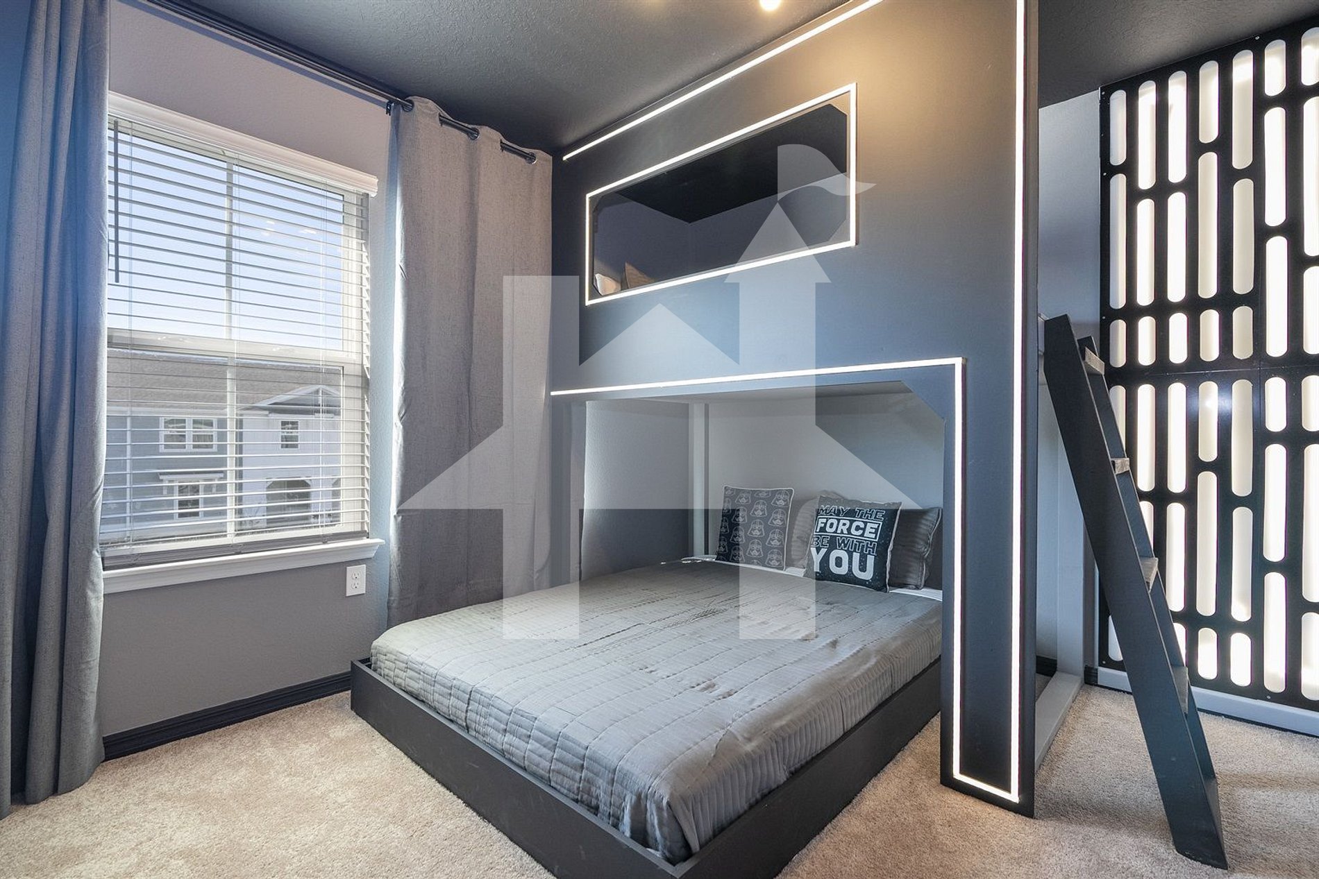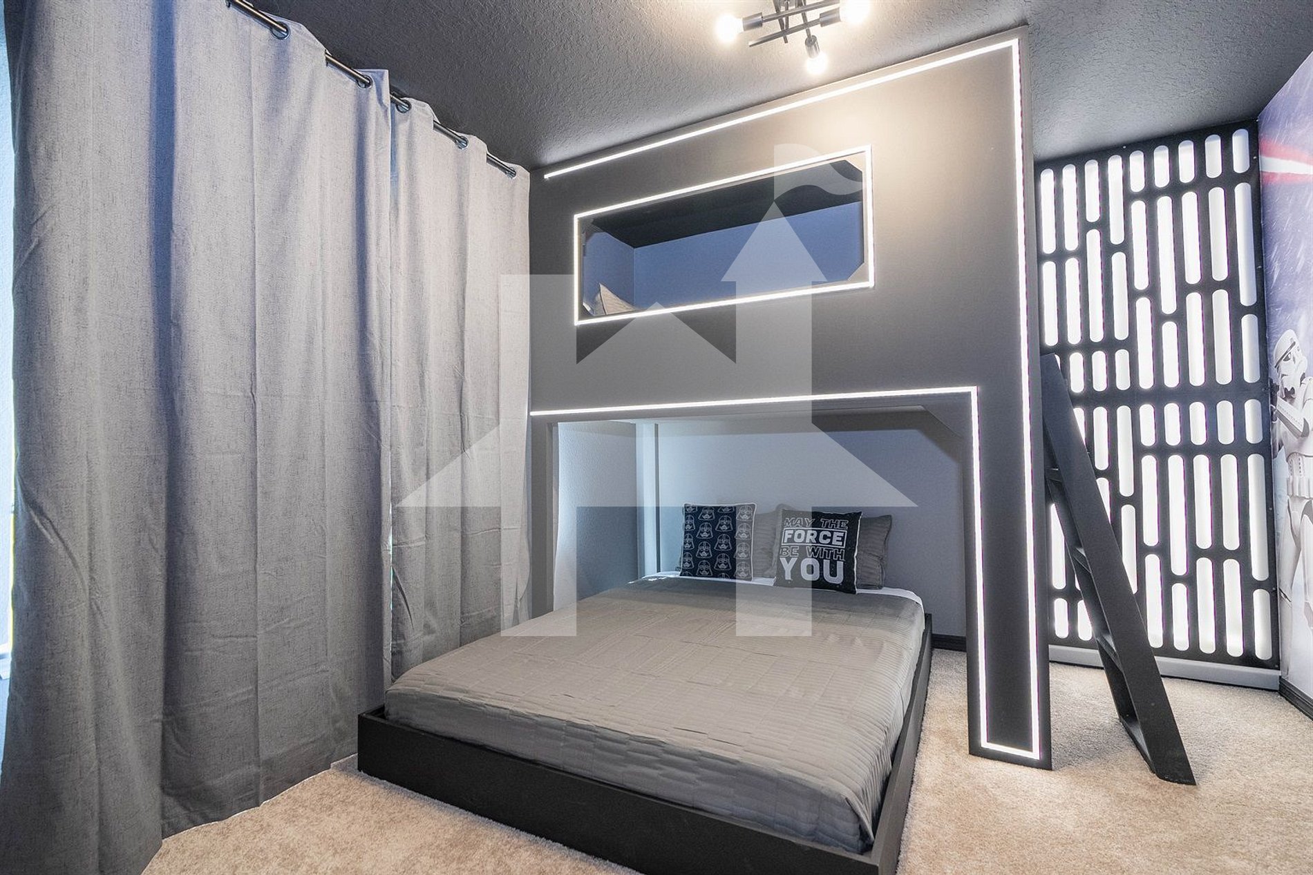 • No andar superior, o loft de jogos é um espaço brilhante e divertido com consoles/arcade e a área de jogos temática Mario que as crianças adoram, além dos quartos temáticos que geram encantamento e fotos memoráveis.