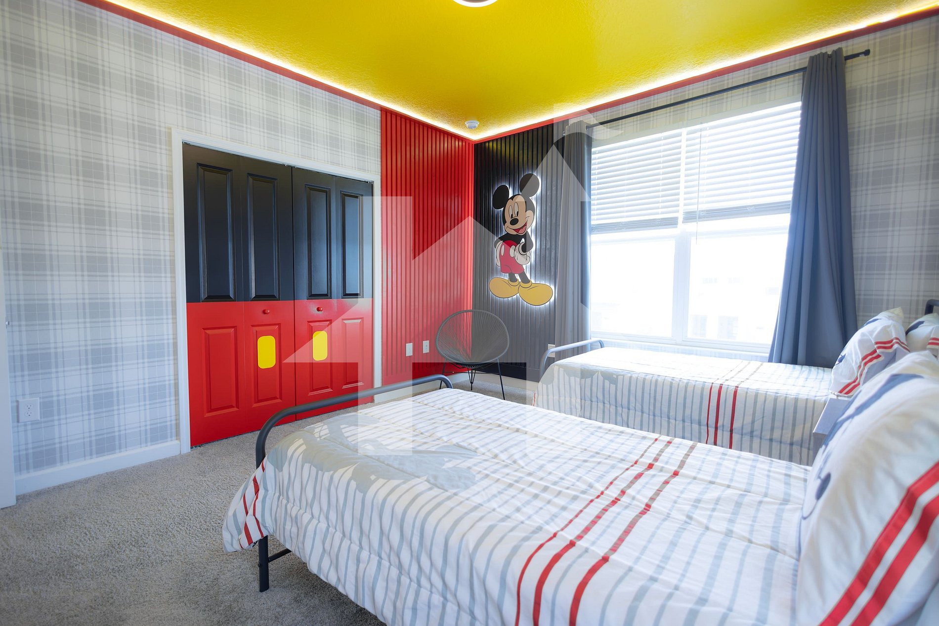 • Bedroom 4: Mickey-themed room with two single beds and private bathroom