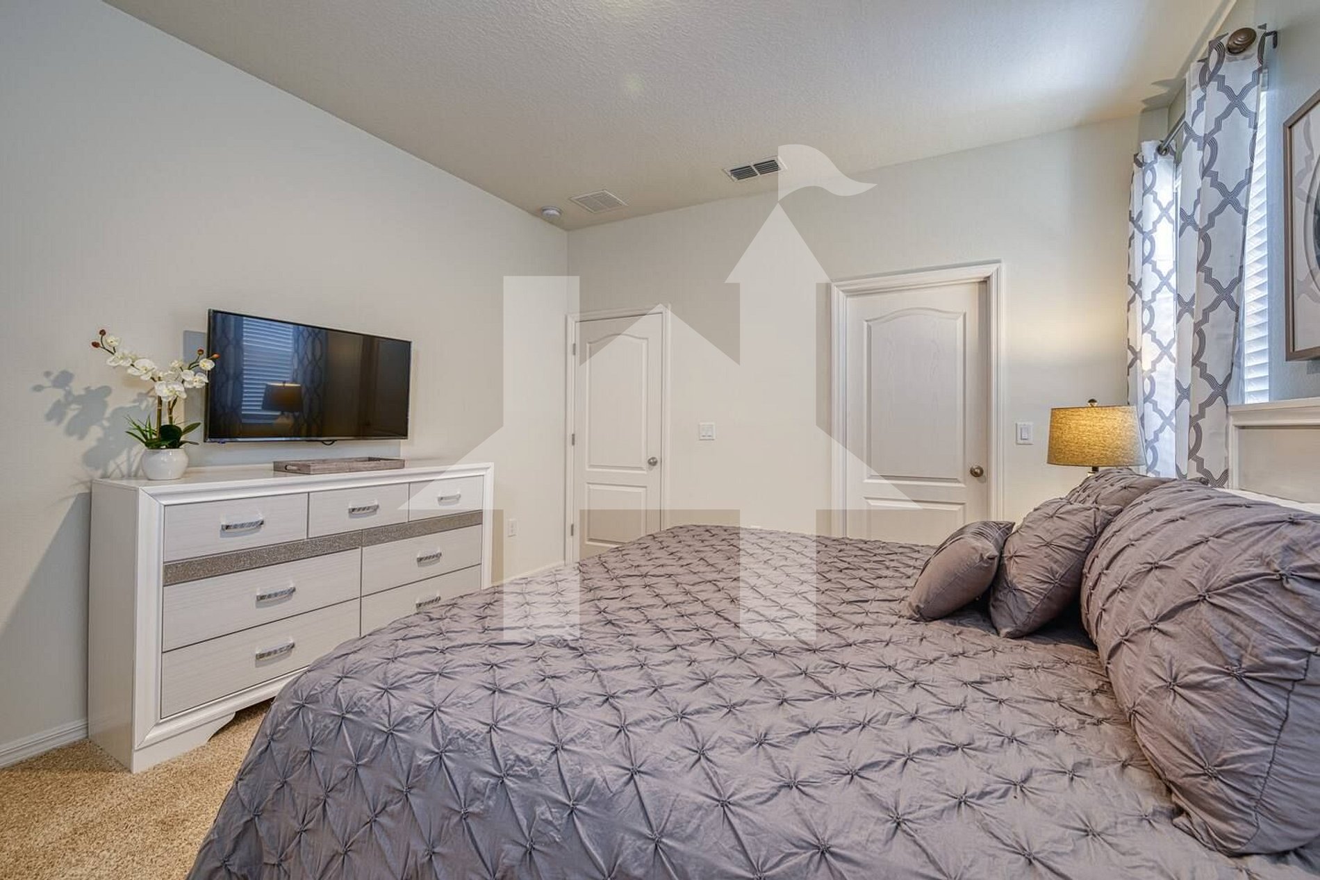 Fique nesta casa ampla de 6 quartos e 6 banheiros no Solterra Resort, perfeita para grupos e famílias que querem conforto e diversão a poucos minutos dos parques. A casa dispõe de piscina privativa com tela, mesa de ping‑pong, PlayStation, cozinha completa, Wi‑Fi rápido, lavanderia e estacionamento. O resort oferece clubhouse, piscina em estilo lago, lazy river com toboágua, academia, café, quadras e playground.