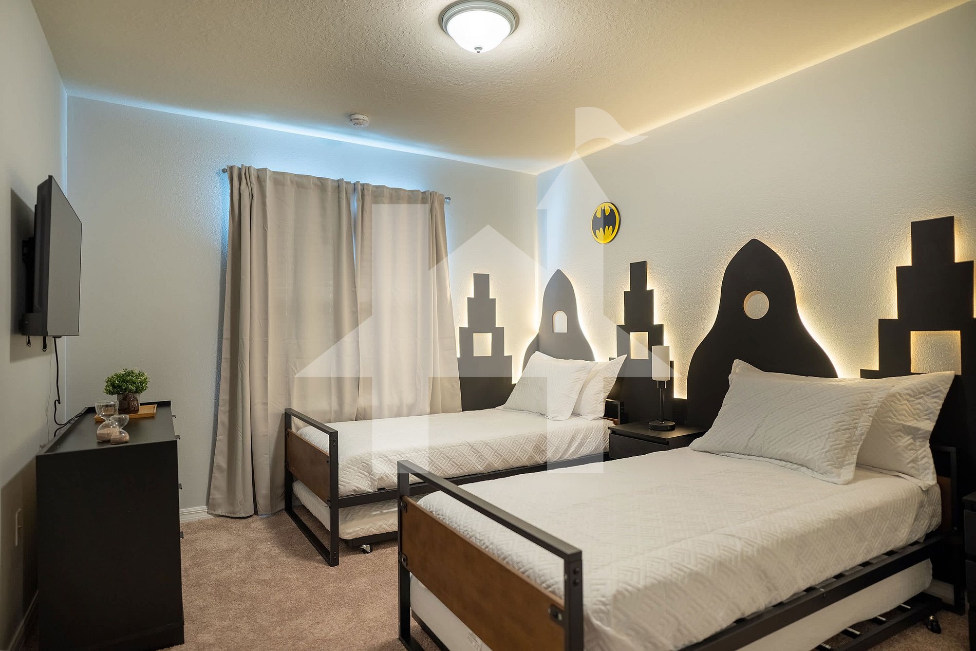 Esta magnífica casa de 10 quartos em Windsor Cay Resort foi projetada para acomodar até 26 hóspedes com o máximo de conforto, estilo e diversão. Com um design contemporâneo e ambientes amplos, a propriedade oferece uma sala de estar integrada com a cozinha gourmet e área de jantar, perfeita para encontros em família ou grupos grandes. No exterior, o pátio abriga uma piscina privativa aquecida e amplo espaço para relaxar. A sala de jogos tematizada em Star Wars garante diversão para todas as idades, enquanto os quartos temáticos transformam a estadia em uma experiência memorável.