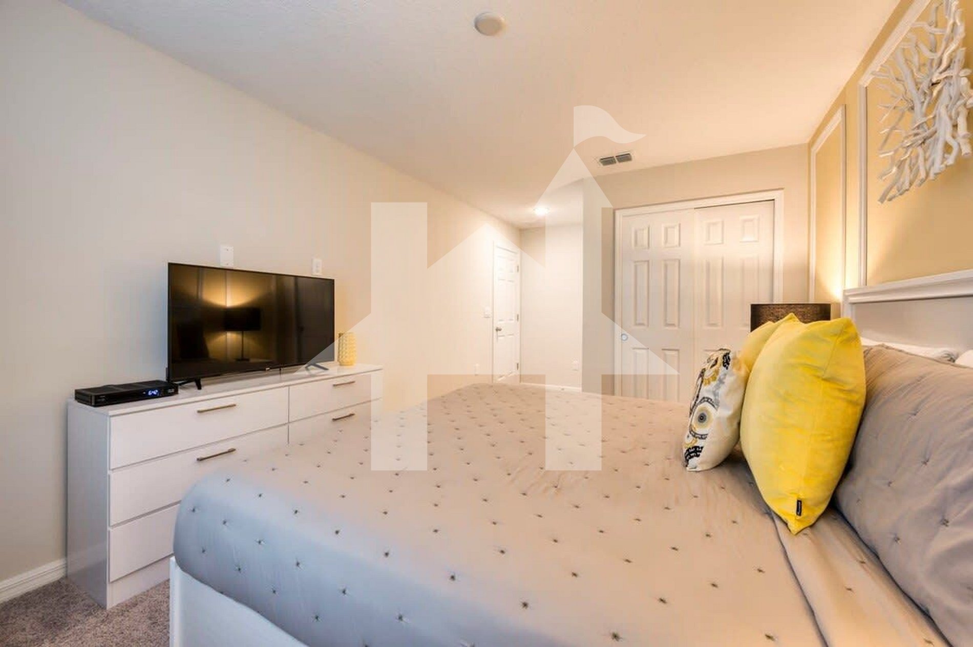 Descubra seu refúgio de férias ideal nesta townhouse de 5 quartos no Solara Resort, a apenas 10 minutos da Disney. Com decoração vibrante e ambientes integrados, a casa oferece uma atmosfera alegre e relaxante. Piscina privativa aquecível, sala de jogos e quartos temáticos completam a experiência. Ideal para famílias em busca de conforto e diversão com estilo.