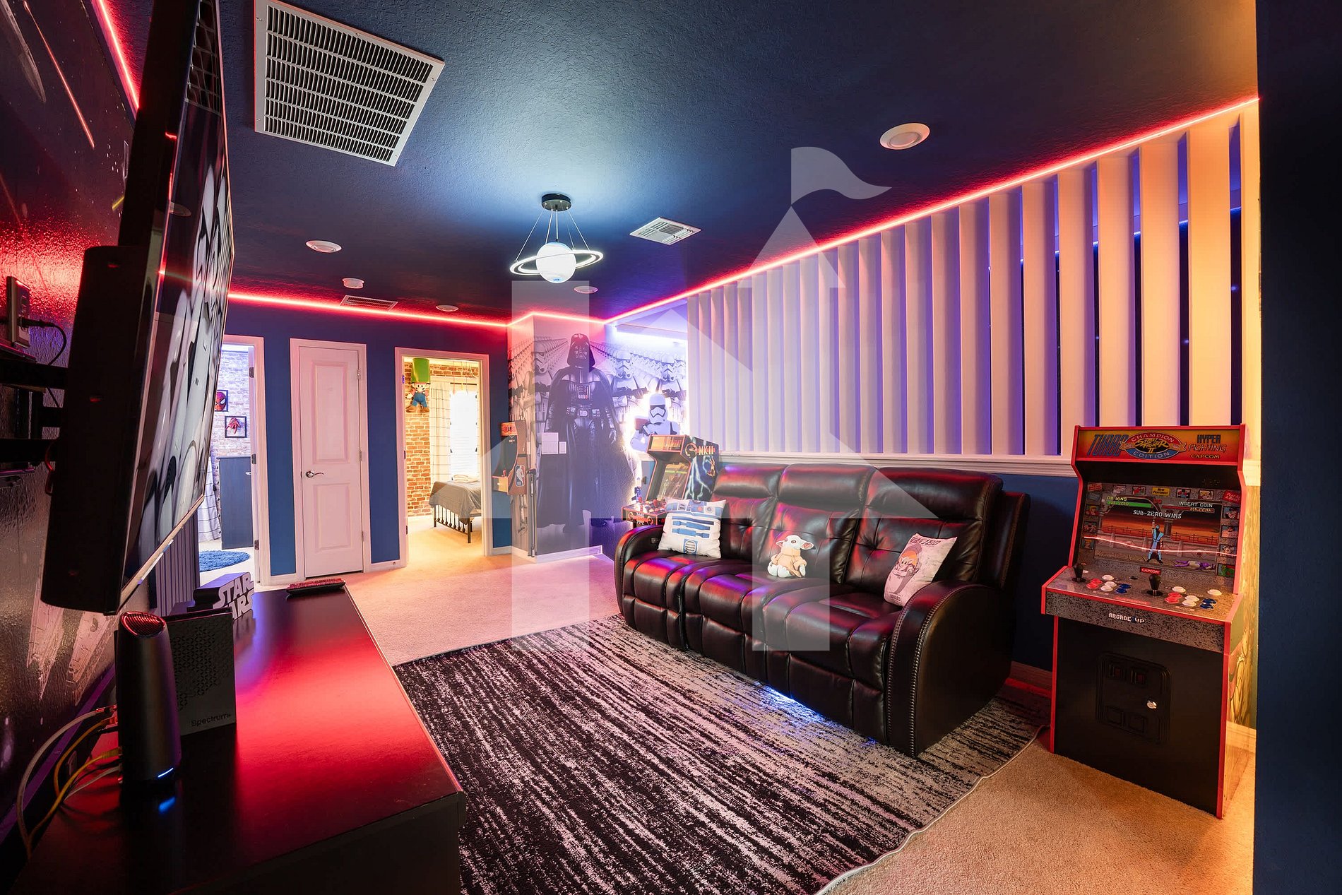 • Sala Star Wars com TV e espaço de cinema