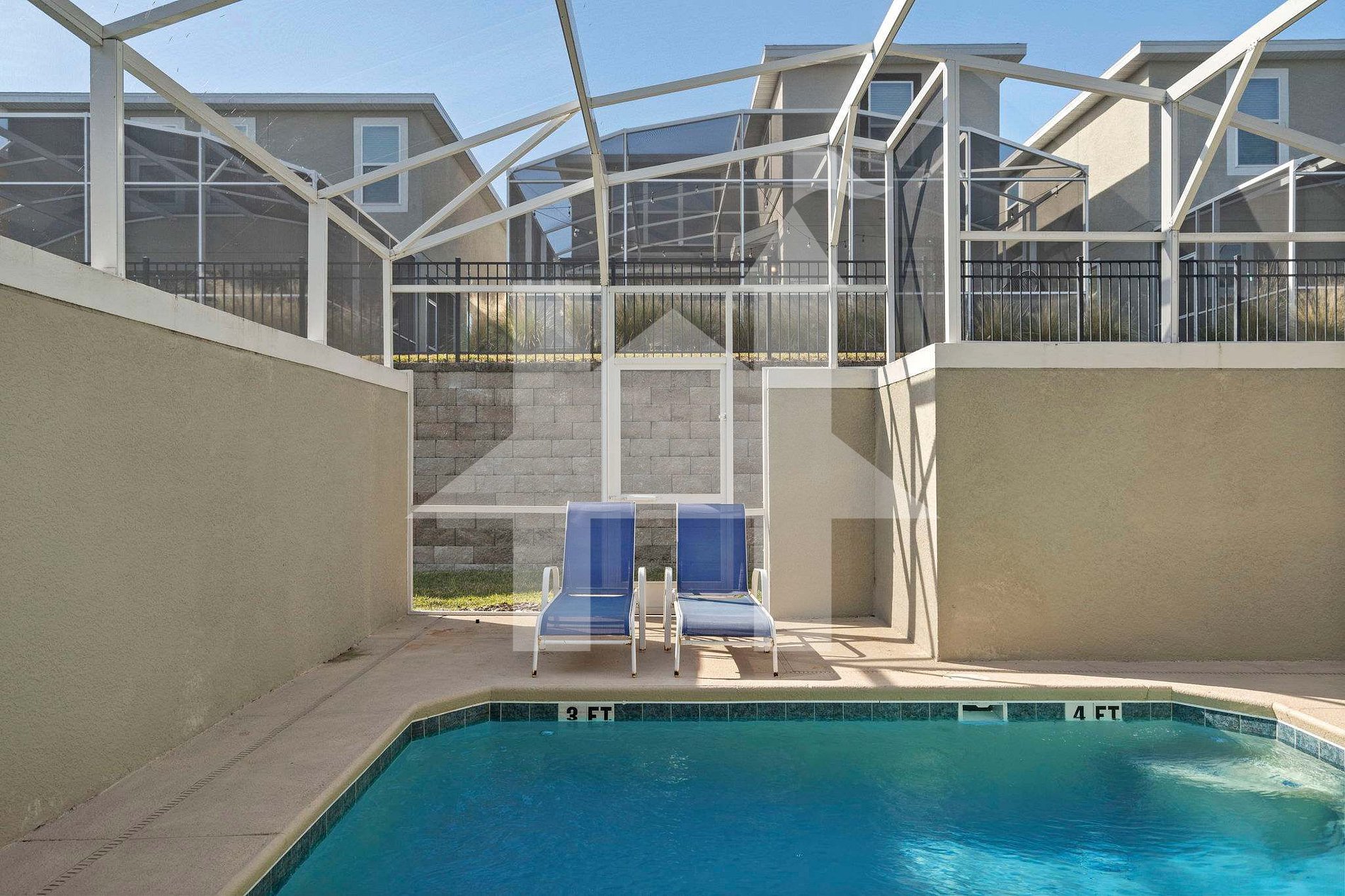 A área externa conta com piscina privativa, perfeita para relaxar após um dia nos parques. O aquecimento da piscina.