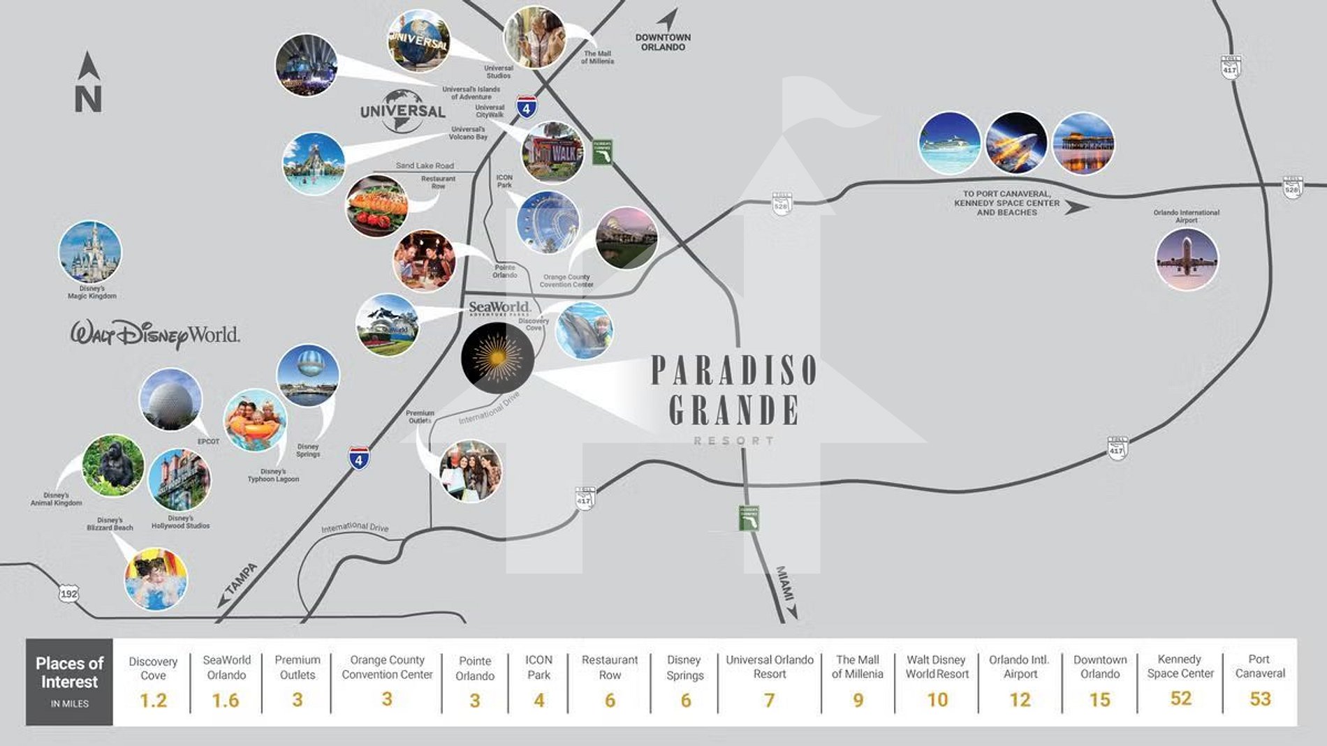Fica a poucos minutos do Orange County Convention Center e do SeaWorld, e cerca de 10–12 minutos da Universal e da Disney, sendo perfeita para famílias ou grupos que buscam espaço, diversão e uma das melhores localizações de Orlando.