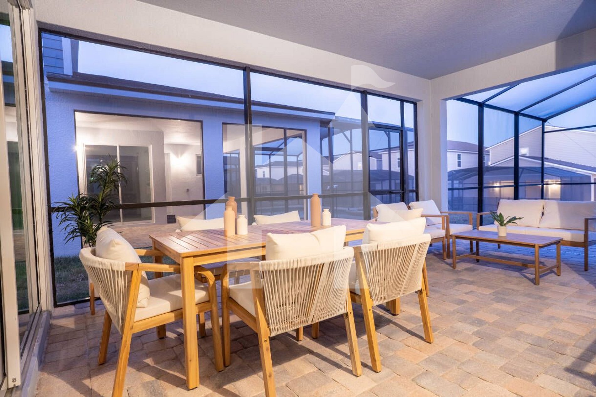 A área externa conta com piscina privativa aquecida, ideal para relaxar e aproveitar o clima da Flórida. Para completar a experiência, a casa oferece uma incrível game room e uma sala de cinema privada, perfeita para noites de filme após um dia nos parques.