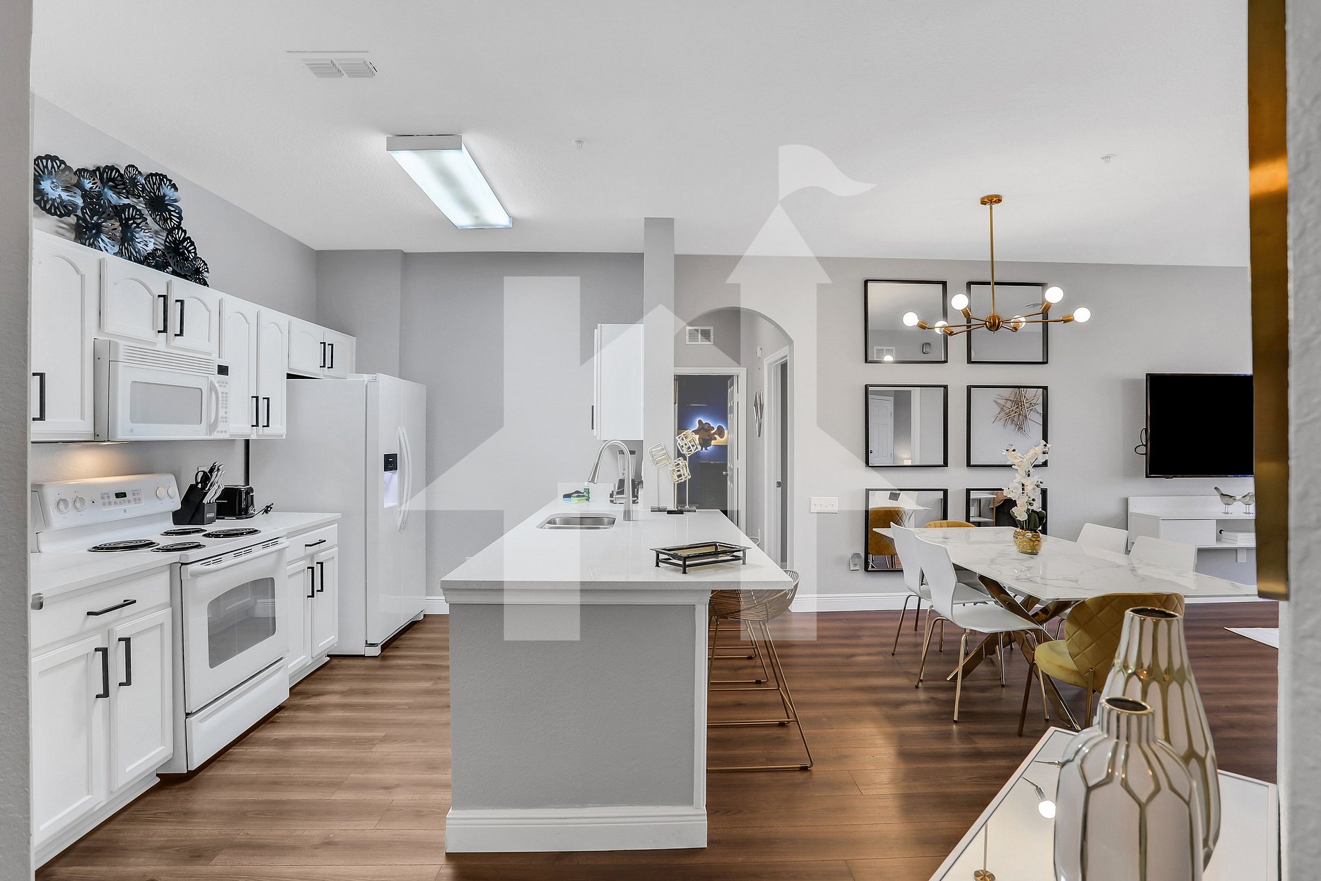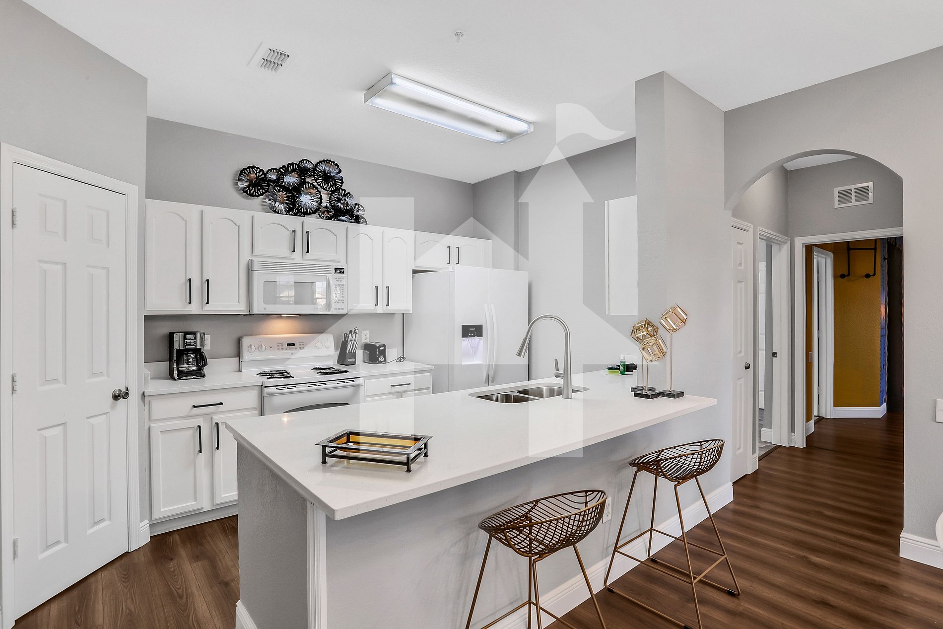 Es war als vorhanden was man gebraucht hat. Alles war außergewöhnlich sauber. Die Lage ist super. Walmart und Aldi sind nur ein paar Minuten entfernt. Man kann in dem Resort in den Pool und es gibt sogar ein Wasserpark. Ein Café im poolbereich, Fitnessstudio, Basketballplatz, Tennisplatz usw. Sehr ruhige Gegend. Haben es so sehr genossen als Familie. Wir haben jede Nacht durchgeschlafen.