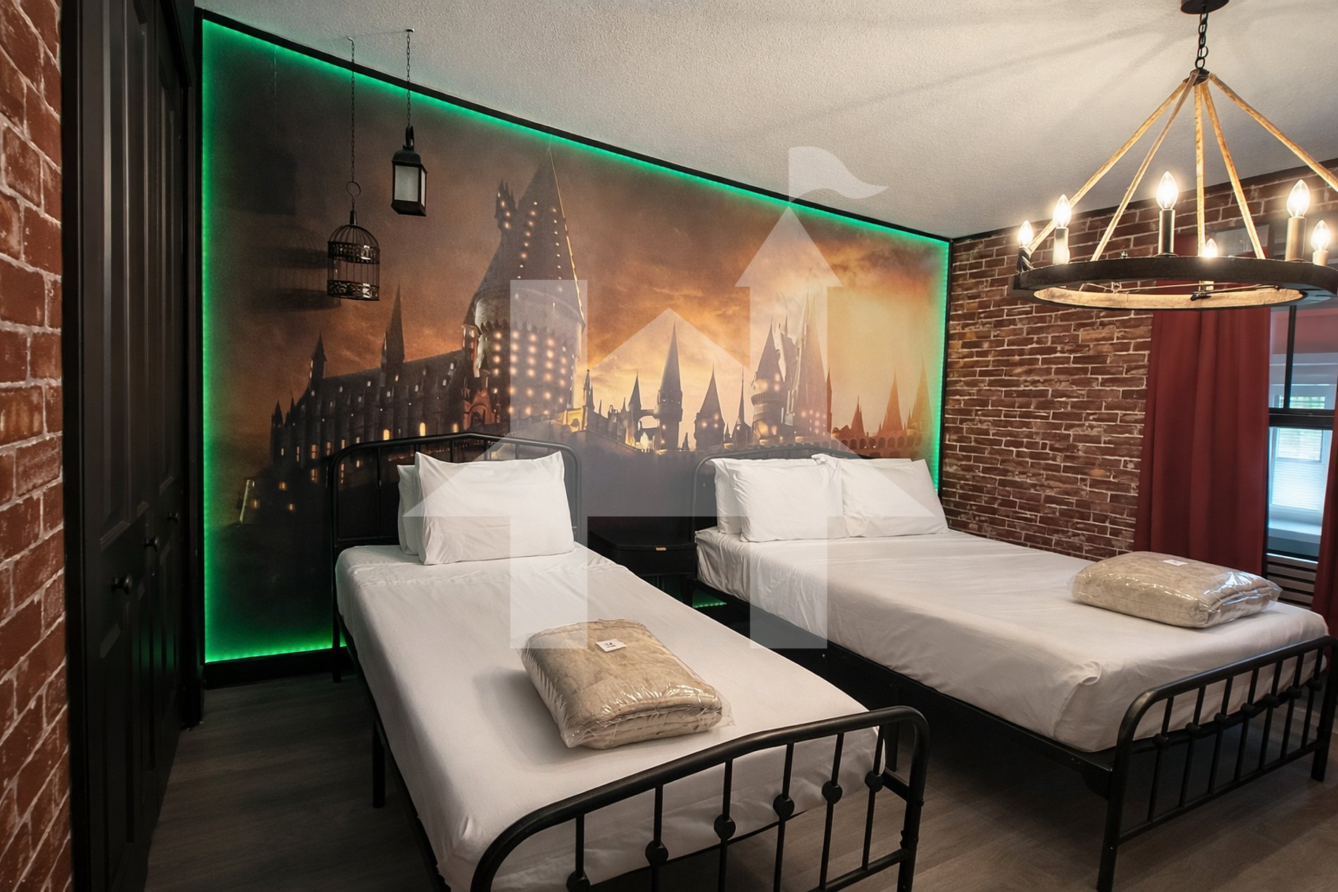 >Quarto Harry Potter - 1 cama de casal e 1 cama de solteiro, TV SMART de 40 polegadas compartilhando banheiro completo