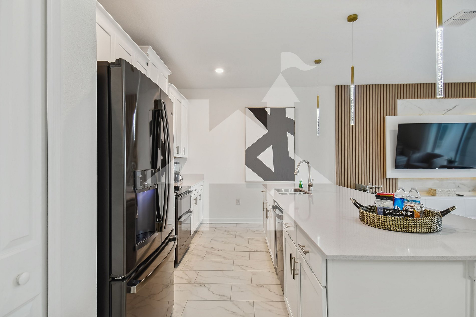 Se você sentir vontade de cozinhar, a cozinha totalmente equipada está pronta para você. Tudo foi projetado para ser aberto e pronto para a família.