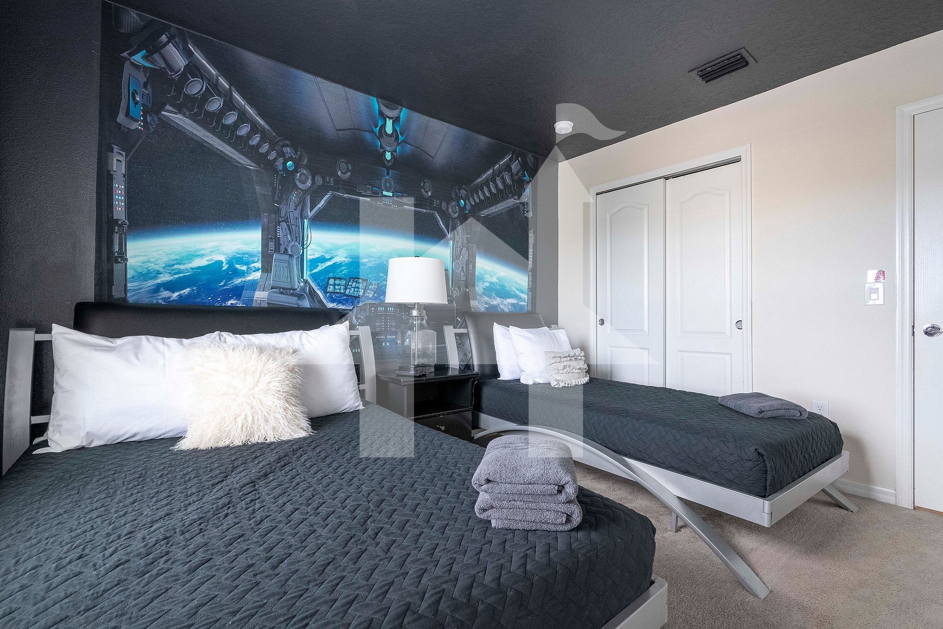 Quarto Temático Mission Space: 1 beliche (casal/single) e 1 cama de solteiro.