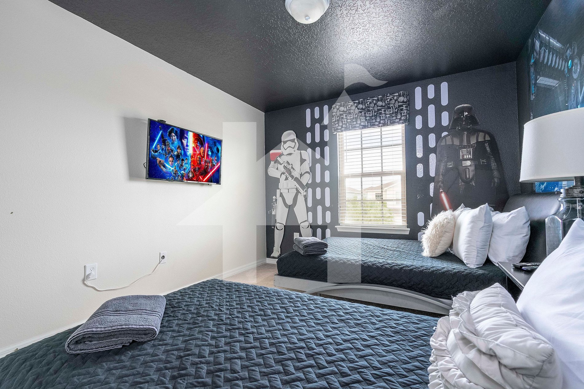 Quarto Temático Star Wars: 1 cama de solteiro e 1 cama de casal.