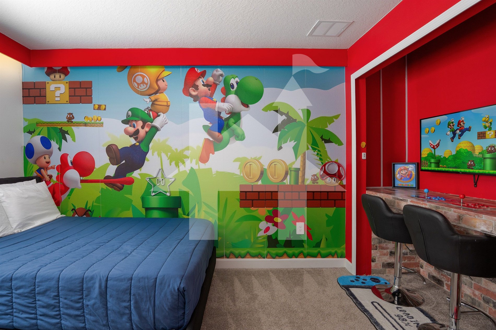 - Quarto Mario Bros: 1 cama de solteiro + 1 de casal, TV smart