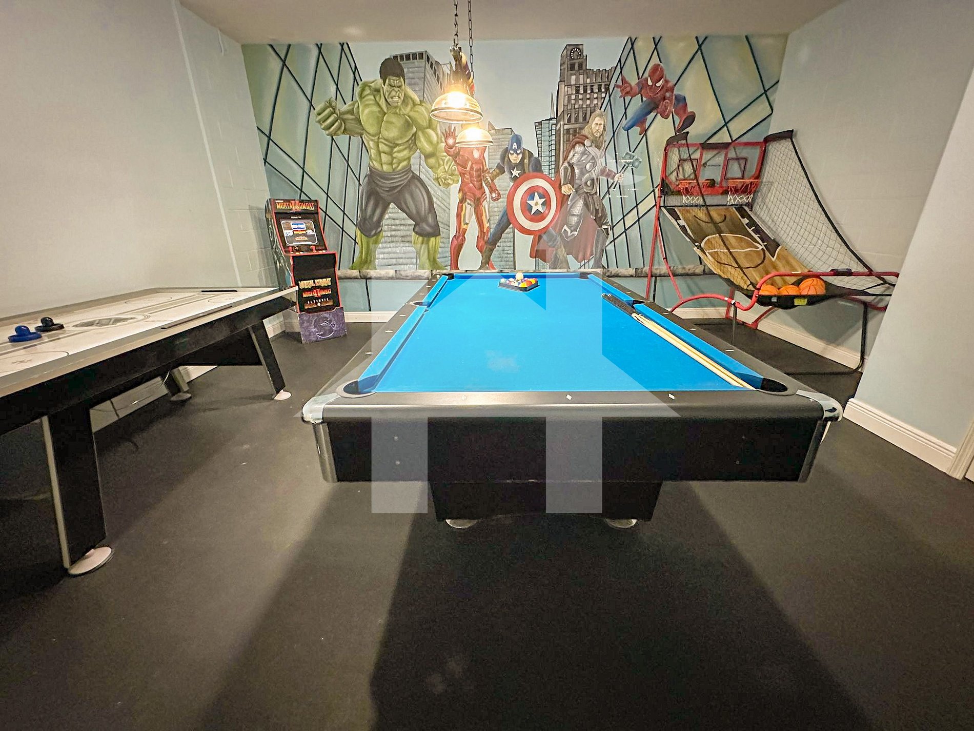 • Sala de jogos dos Vingadores com sinuca e air hockey