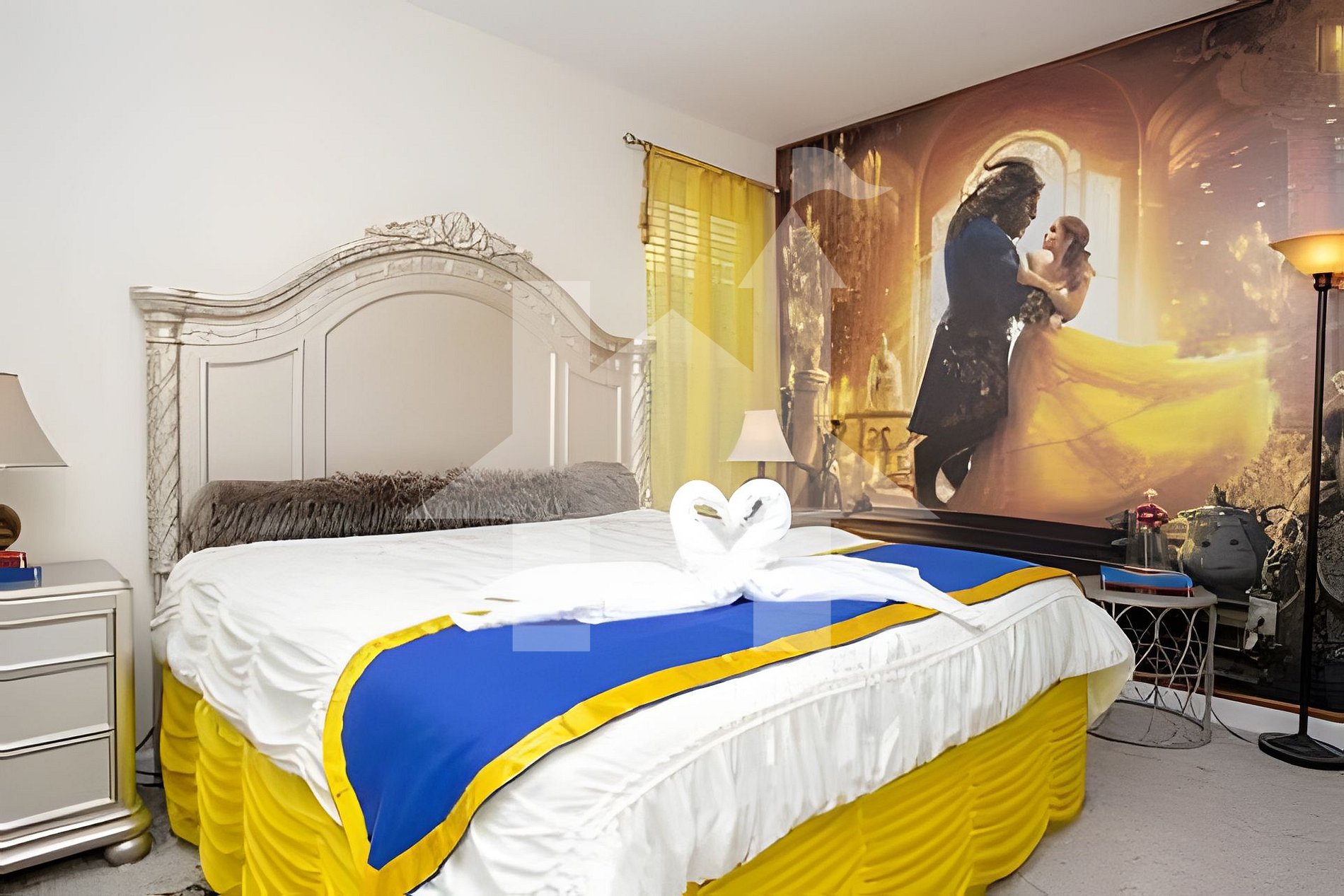 Quarto A Bela e a Fera: cama king, Smart TV, banheiro compartilhado.
