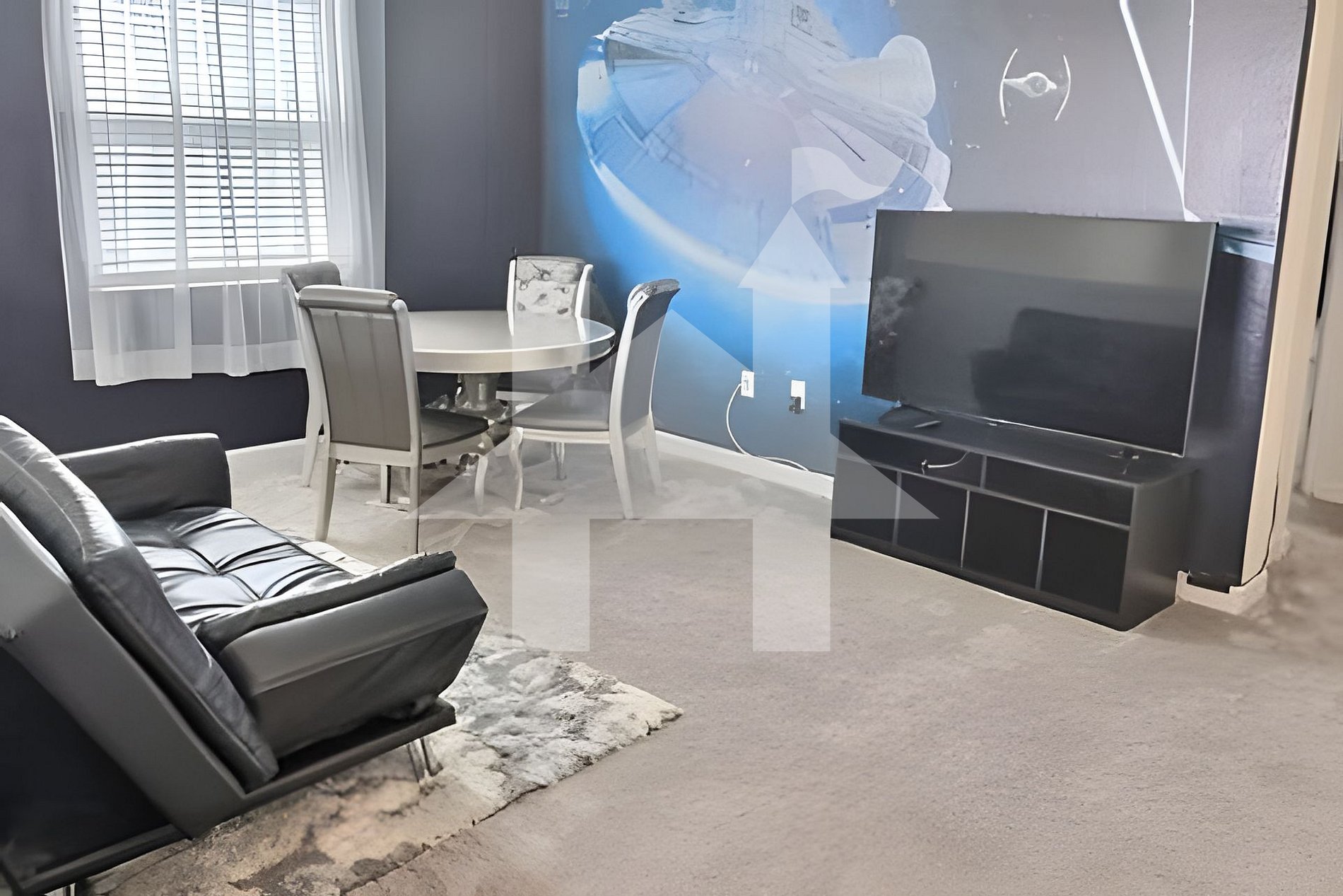 Quarto Star Wars: sofá 2 lugares, mesa para 4, Smart TV, banheiro compartilhado.