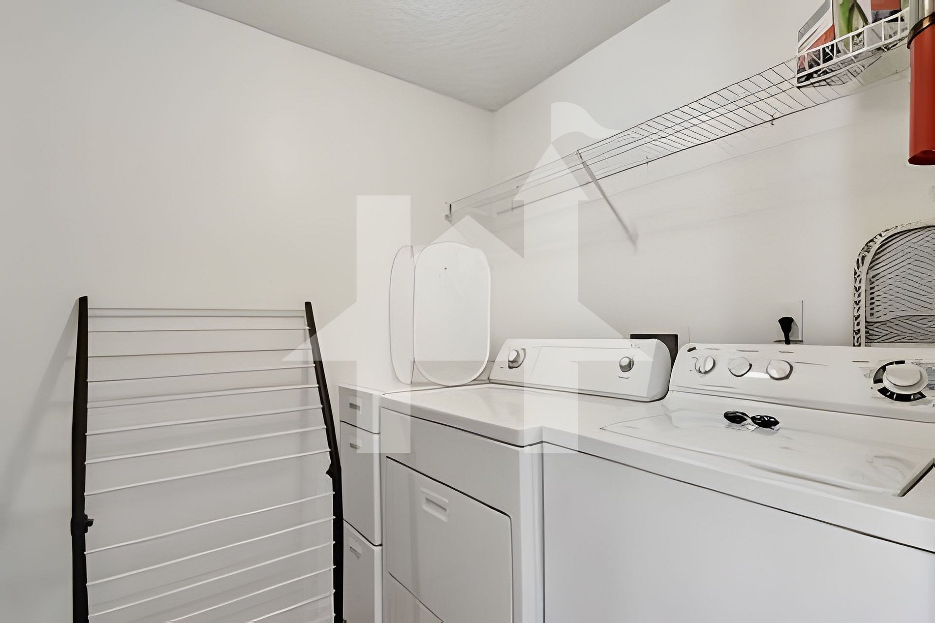 Disponível com máquina de lavar, secadora, ferro, tábua de passar e varal.