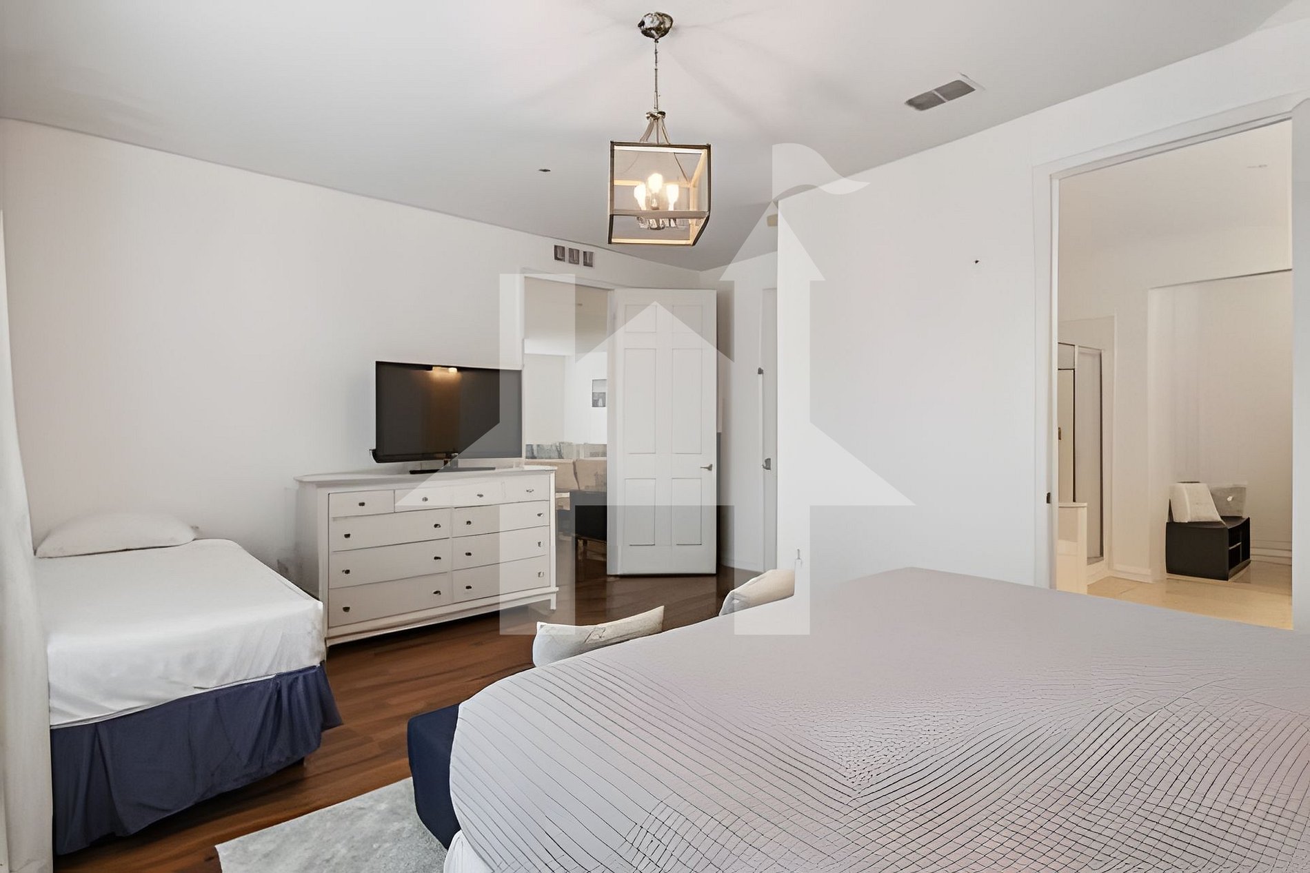 • Suíte Master: Cama king-size, TV, closet espaçoso, banheiro privativo com chuveiro