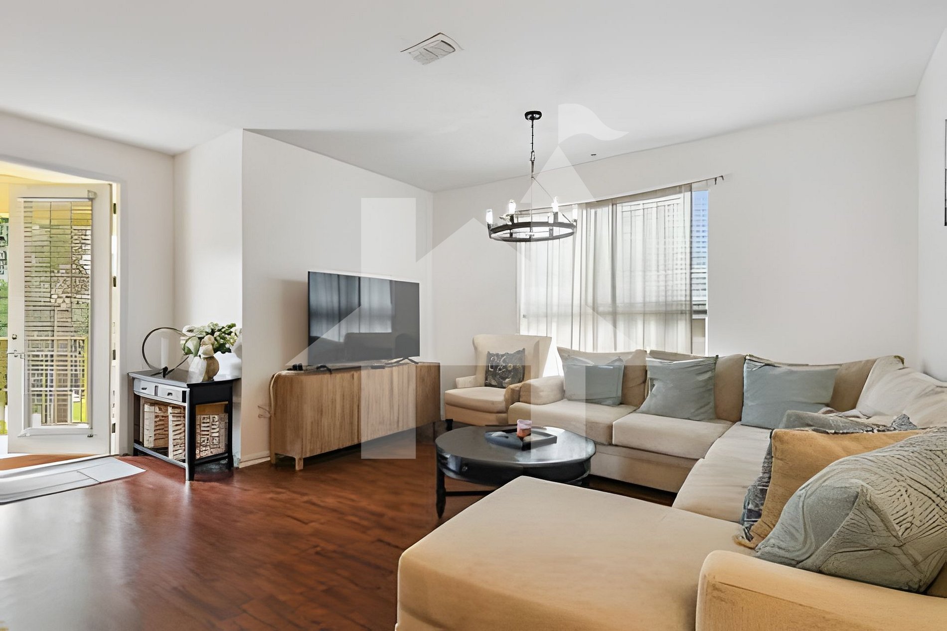 • Sala de estar com sofá para 8 pessoas, Smart TV e varanda telada