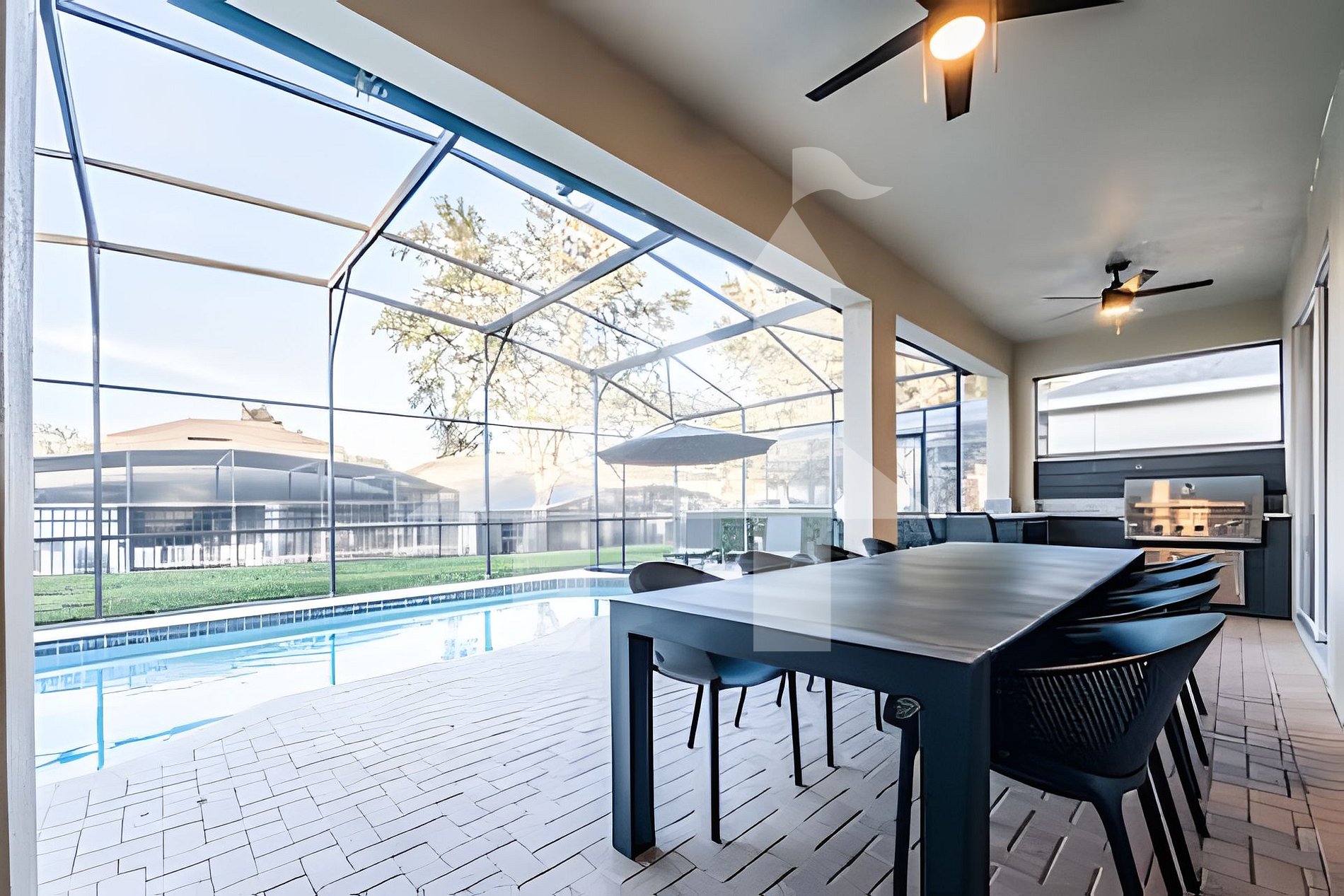 Desfrute do sol da Flórida na área da piscina privativa, que inclui espreguiçadeiras e uma área de jantar espaçosa. A cozinha de verão com churrasqueira a gás e cooler de bebidas é perfeita para refeições ao ar livre em um ambiente encantador, criando memórias duradouras com seus entes queridos.