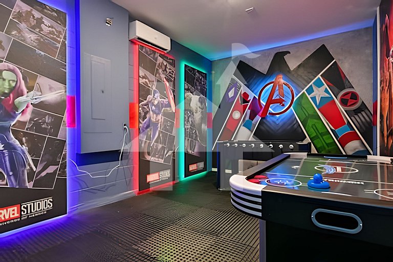 Bem-vindo à sua casa de férias na Flórida! Esta linda casa com 7 quartos decorados temáticos acomoda até 16 pessoas, perfeita para grupos grandes ou famílias. Relaxe na jacuzzi privada ou desfrute do incrível parque aquático do Solara Resort, com acesso gratuito para os hóspedes. A casa inclui churrasqueira, spa, fire pit, e todos os utensílios essenciais para uma estadia confortável. Localizada a menos de 20 minutos dos parques da Disney e perto de todas as atrações de Orlando.