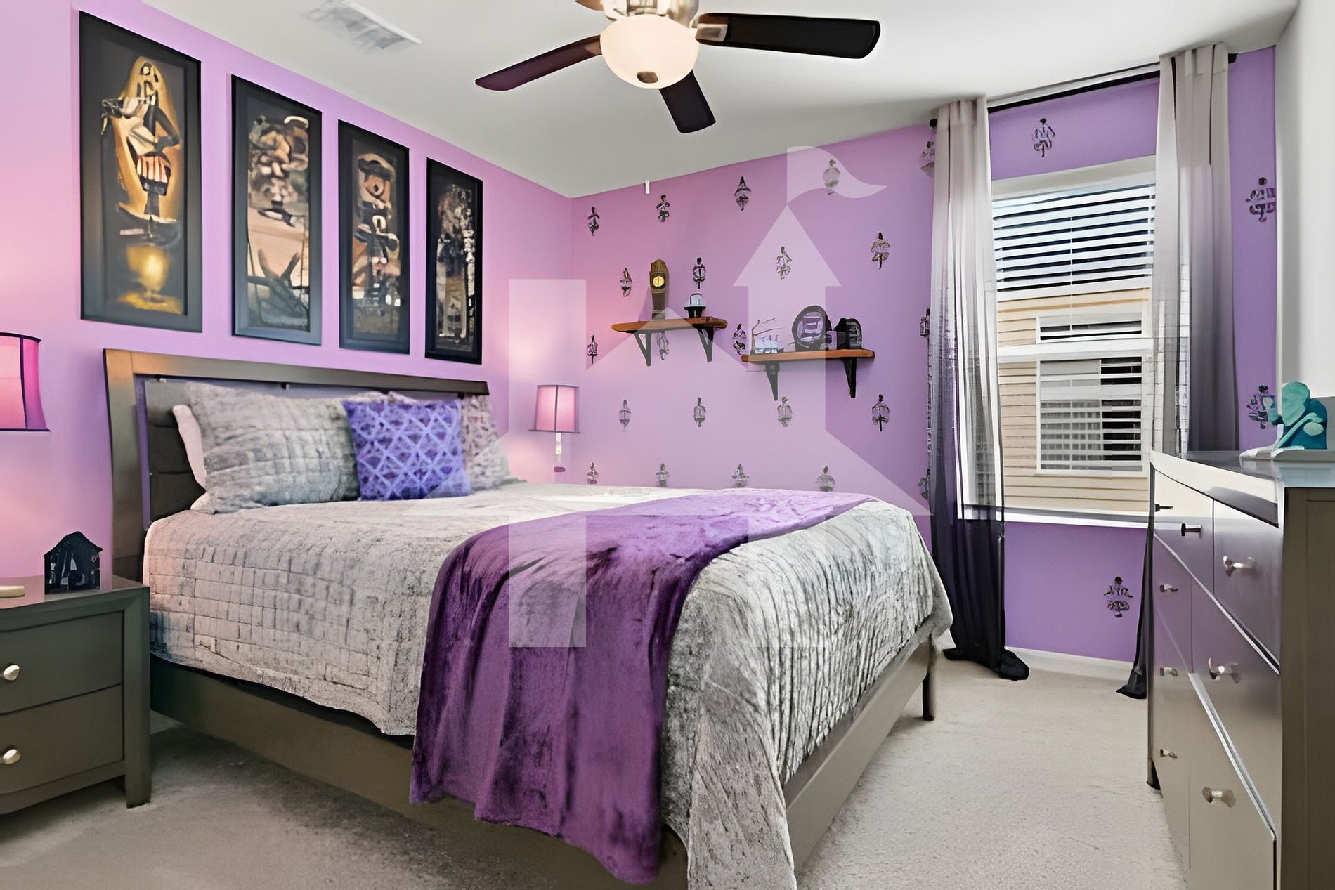 Quarto 3: 1 cama Queen com tema Follish Mortals (banheiro compartilhado).