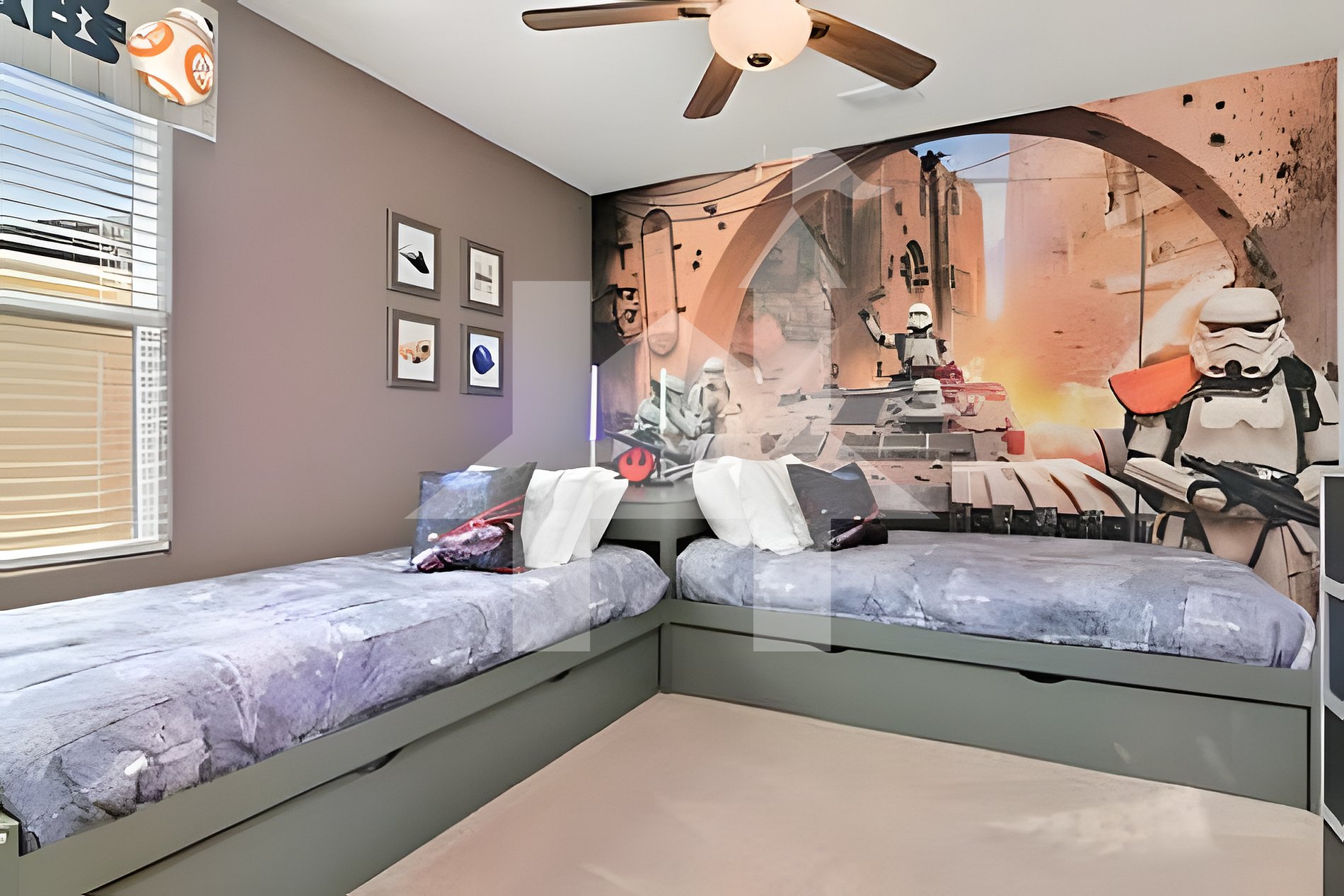 Quarto 4: 2 camas de solteiro com tema Star Wars (banheiro Jack e Jill).