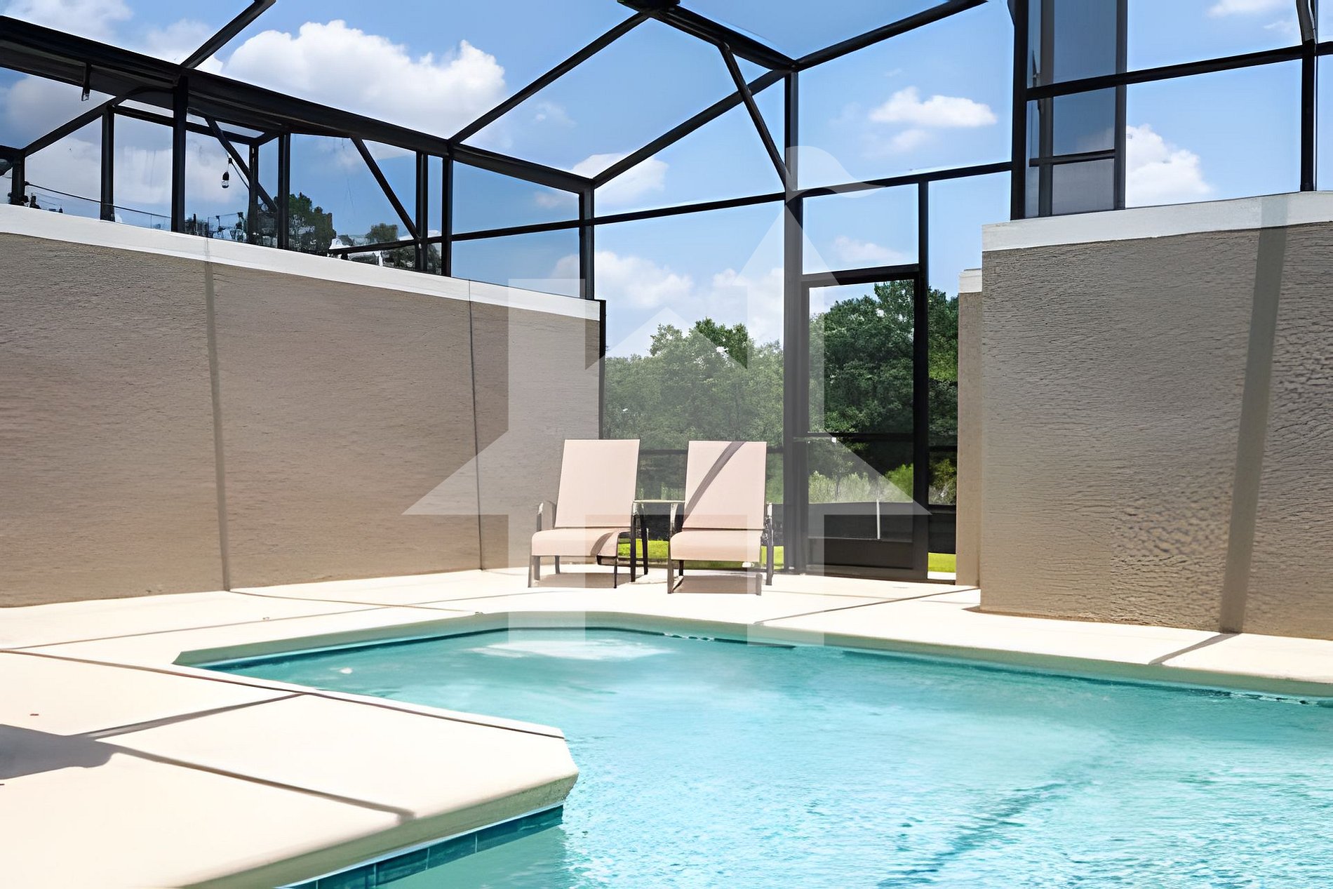 Desfrute da sua piscina privativa aquecida em um pátio telado, ideal para aproveitar o sol da Flórida com conforto e privacidade. A churrasqueira está disponível mediante taxa adicional — perfeita para refeições ao ar livre e momentos especiais em família.