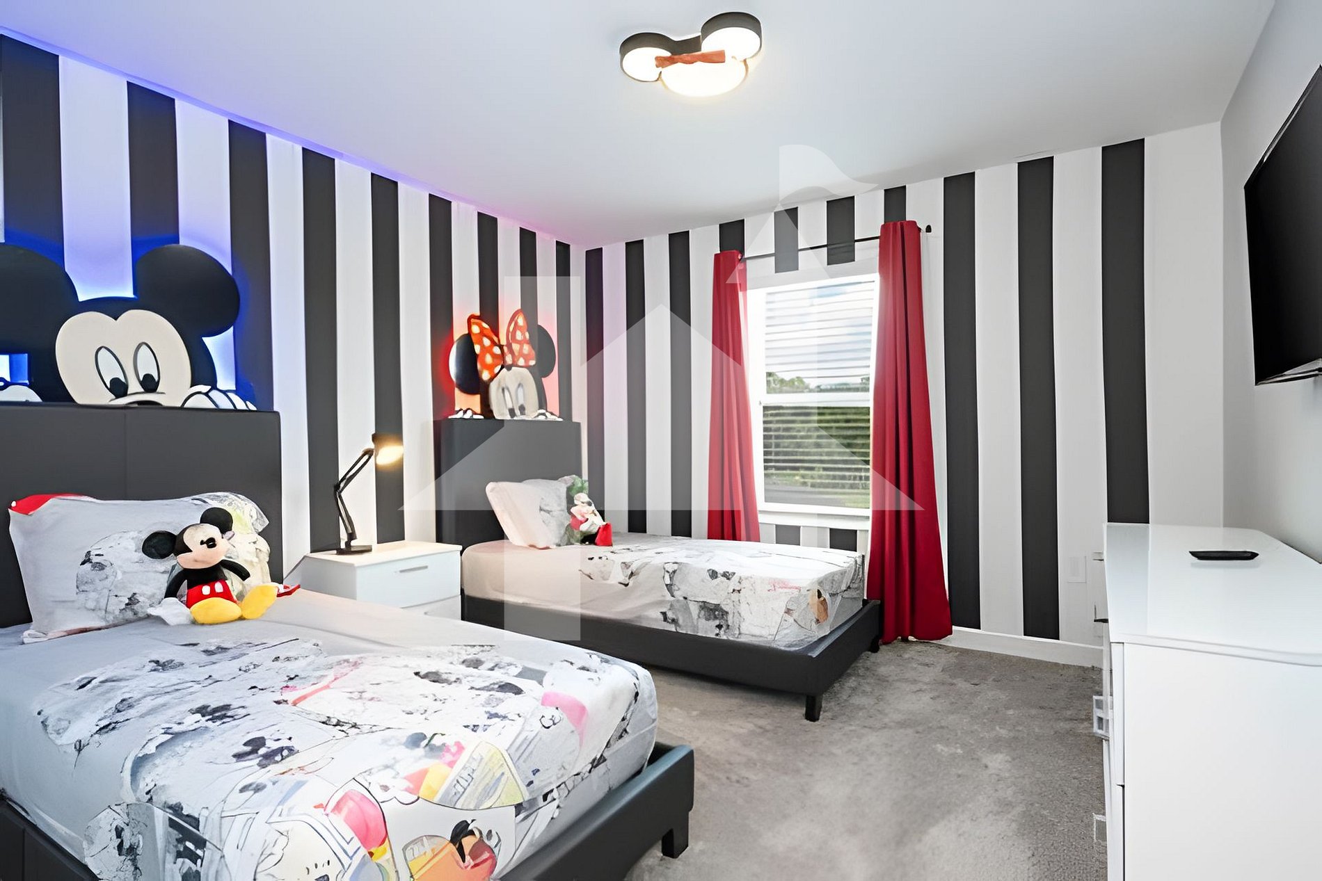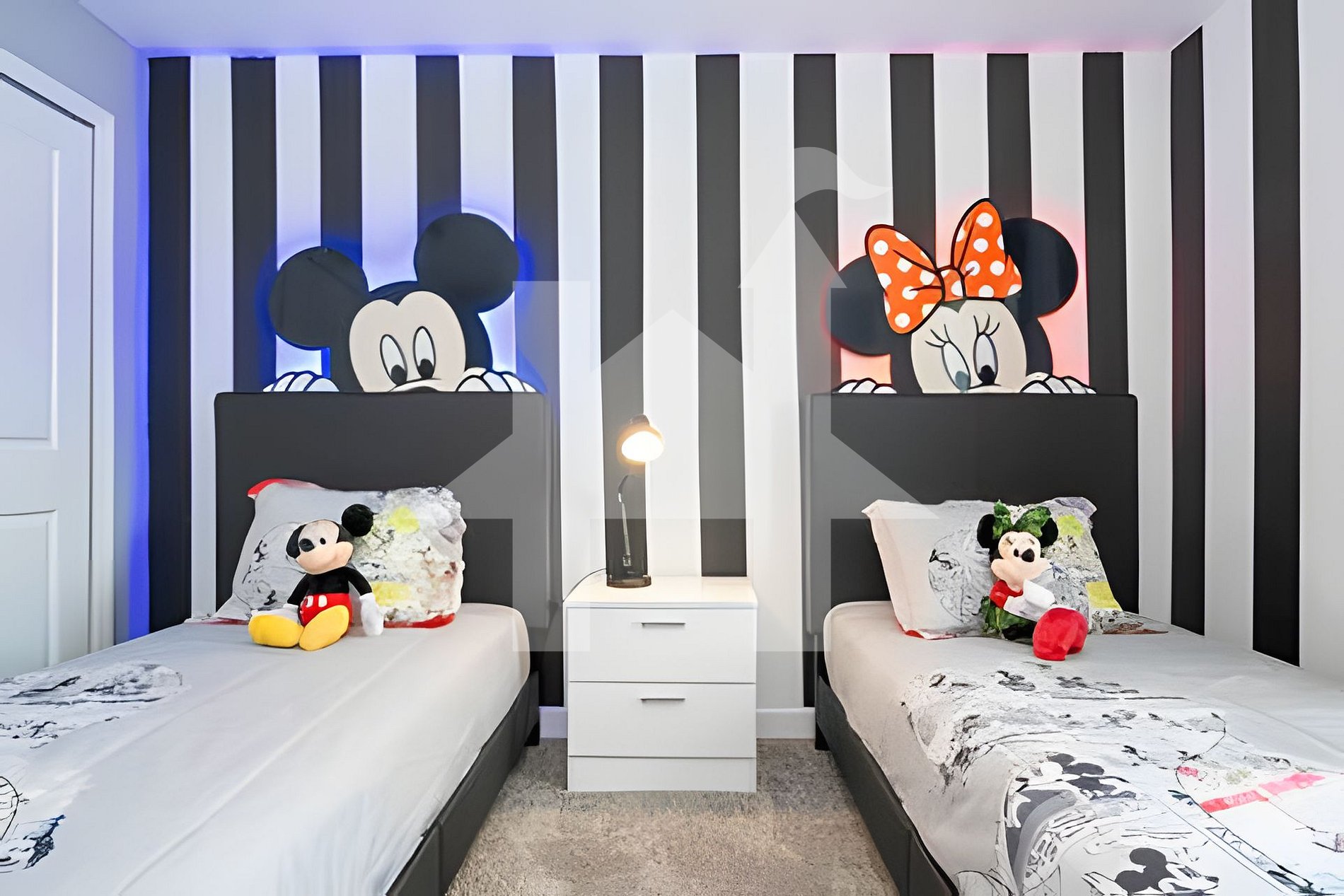 • Quarto Mickey Mouse com duas camas de solteiro e TV Smart