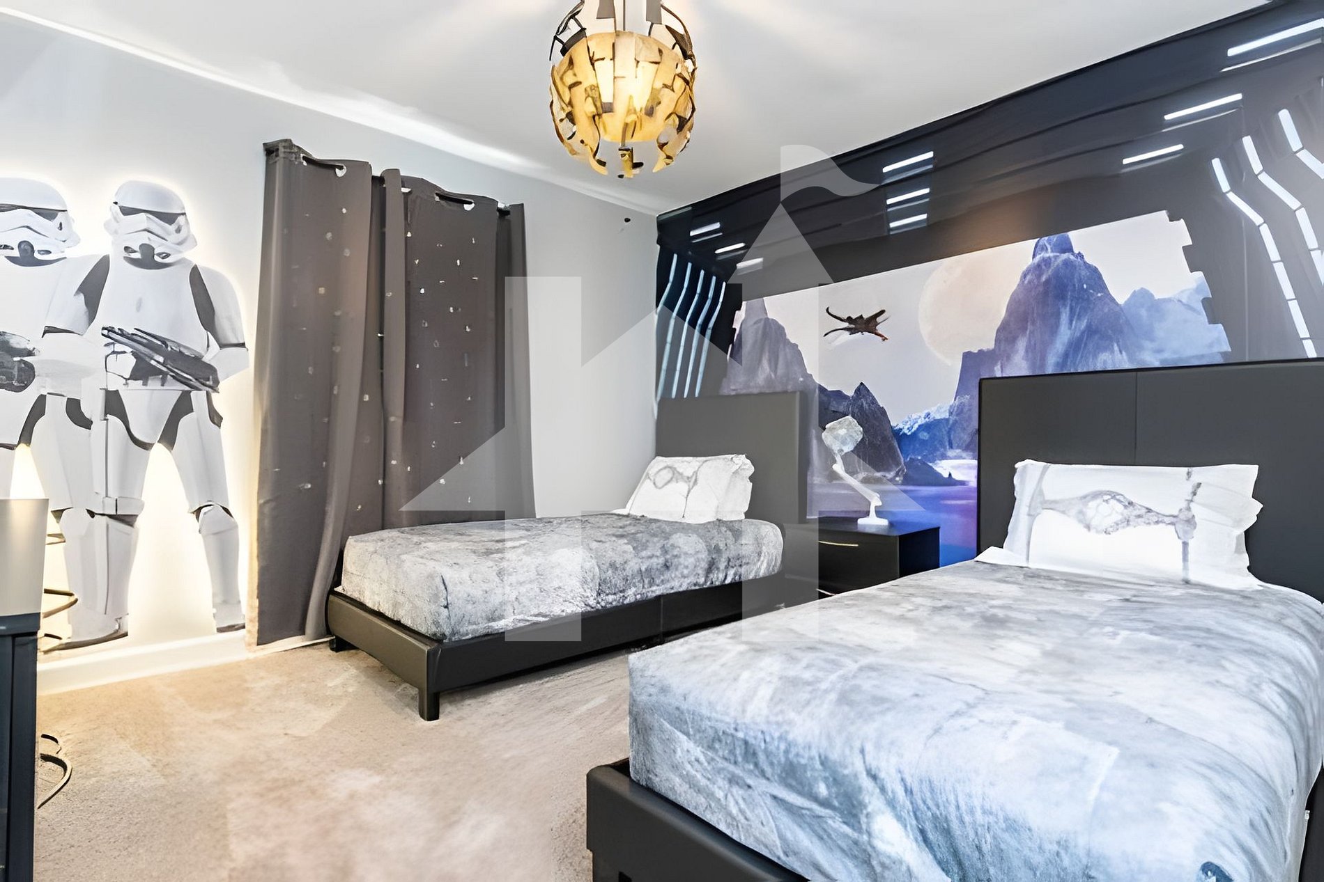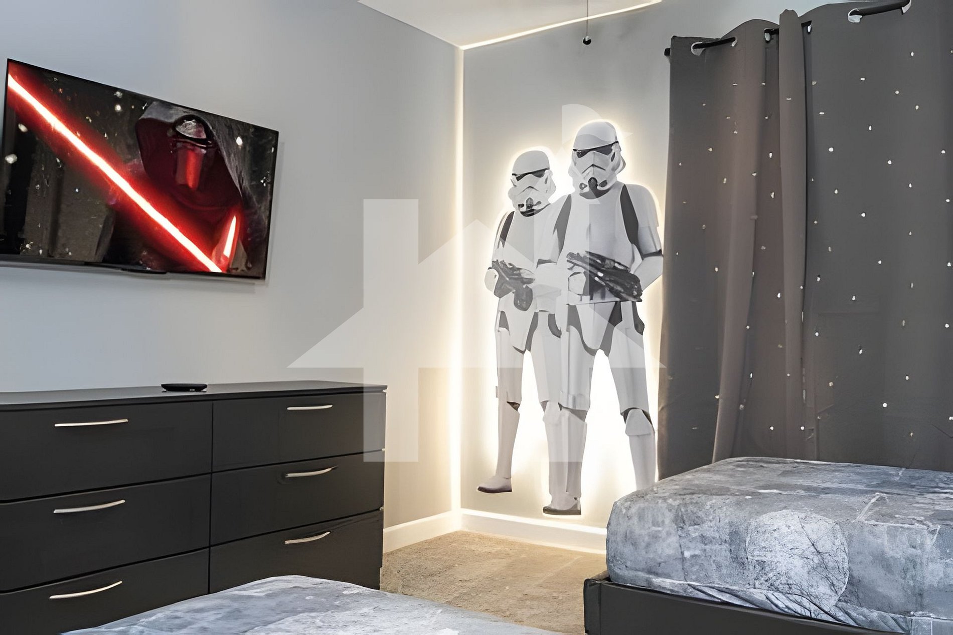 • Quarto Star Wars com duas camas de solteiro e TV Smart
