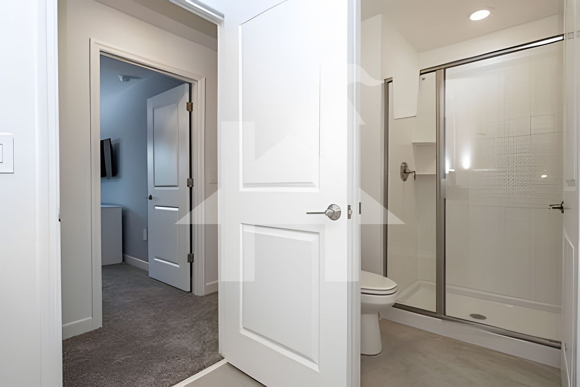 • Suíte master com cama king-size, TV Smart de 50″, closet e banheiro privativo com chuveiro