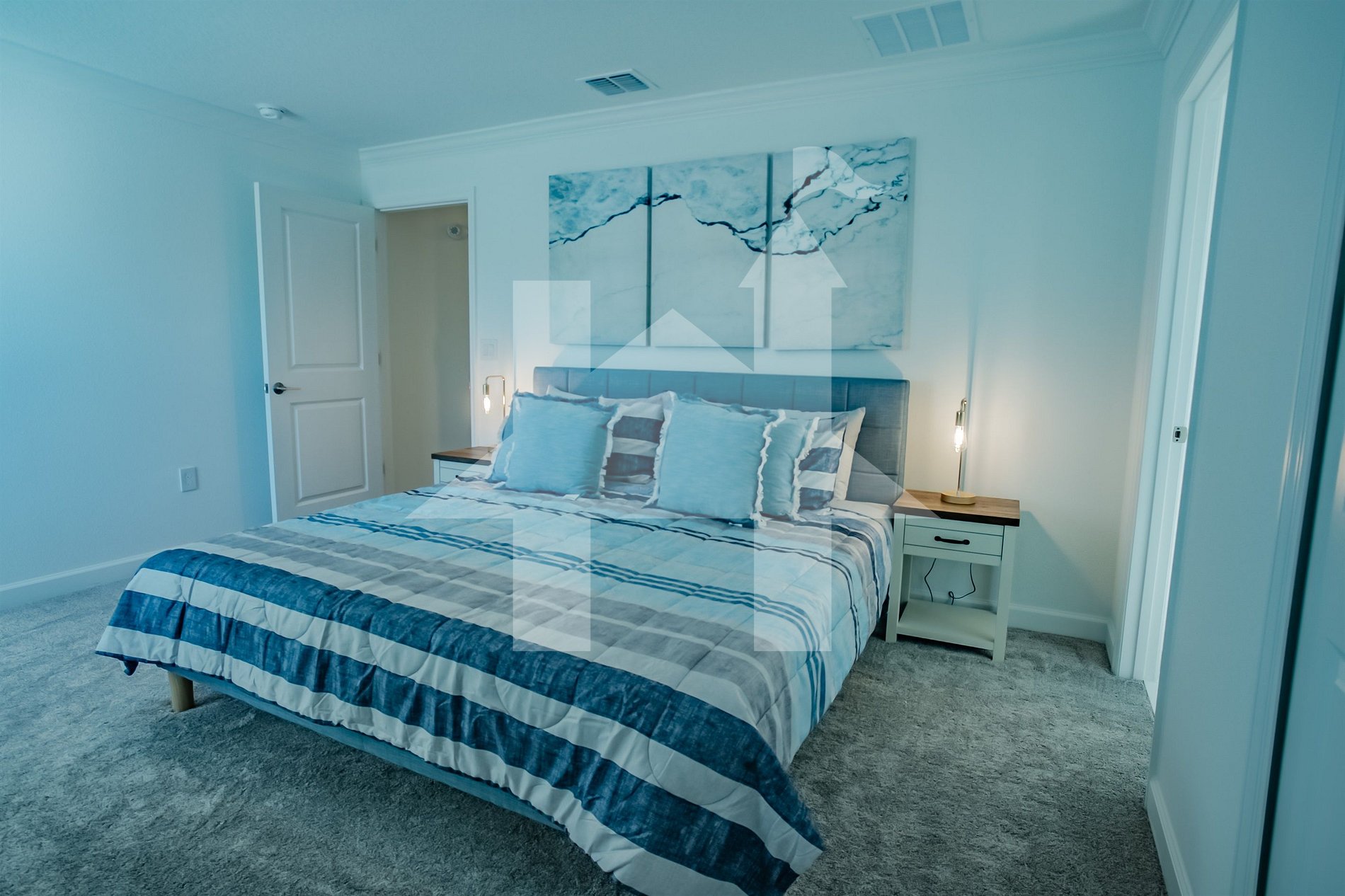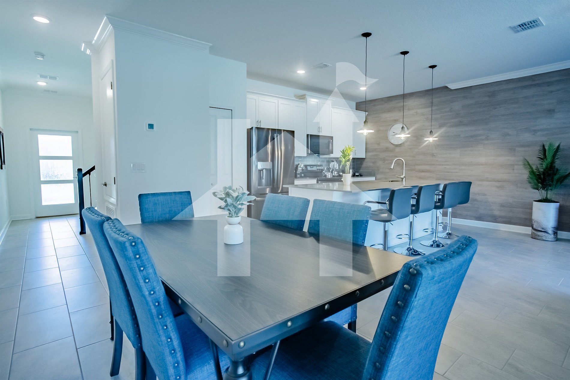 Esta luxuosa townhouse de dois andares em Storey Lake Resort oferece o equilíbrio perfeito entre conforto e conveniência. A casa possui 4 quartos e 3 banheiros, incluindo uma suíte master com cama king-size e banheiro privativo. No andar térreo, você encontrará uma espaçosa área de estar com um sofá de 5 lugares e uma TV SMART de 65 polegadas, além de uma cozinha totalmente equipada para refeições caseiras. A área de jantar acomoda até 12 pessoas (8 na mesa e 4 no balcão), ideal para refeições em família.