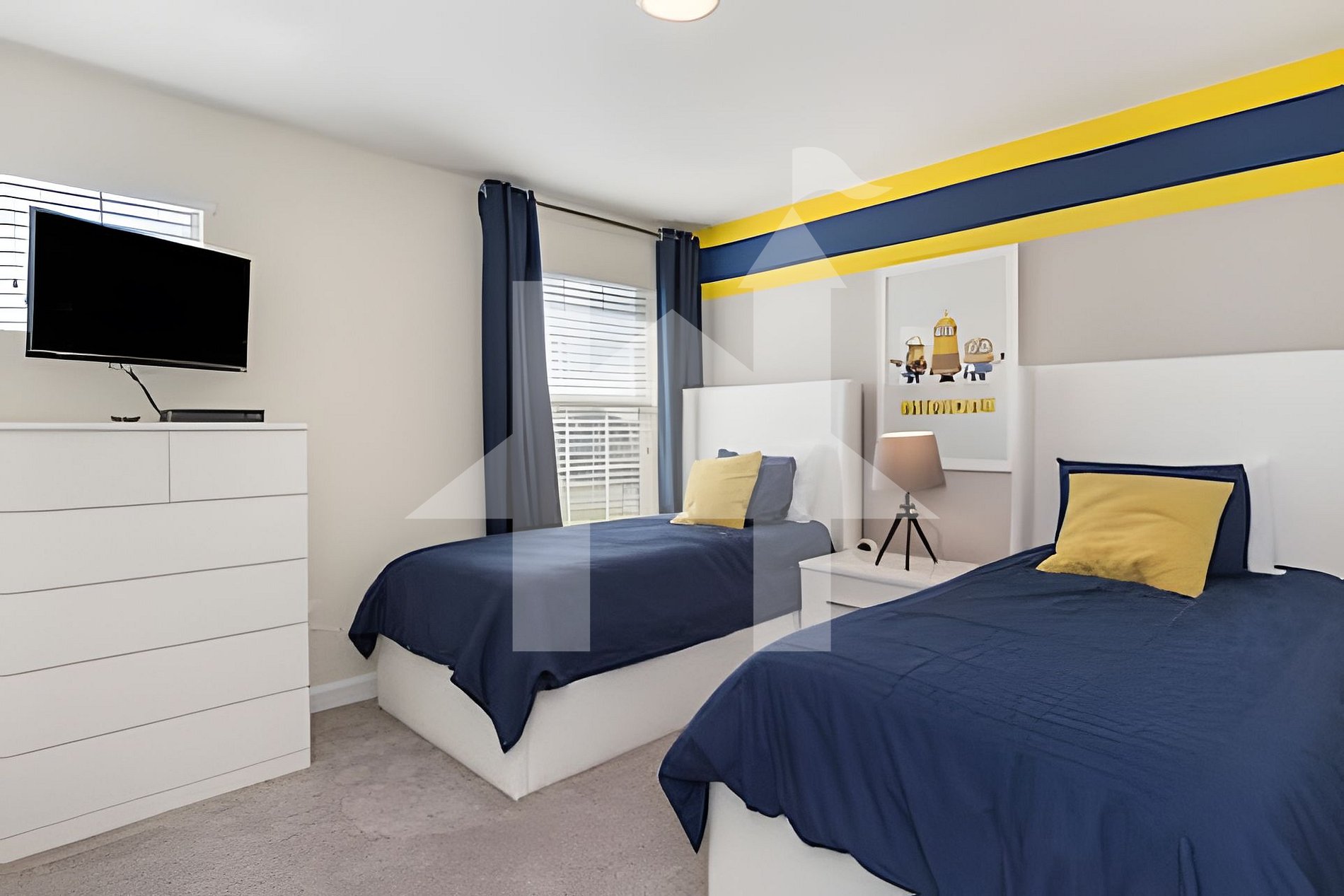 Quarto 4 com duas camas de solteiro, tema Minions