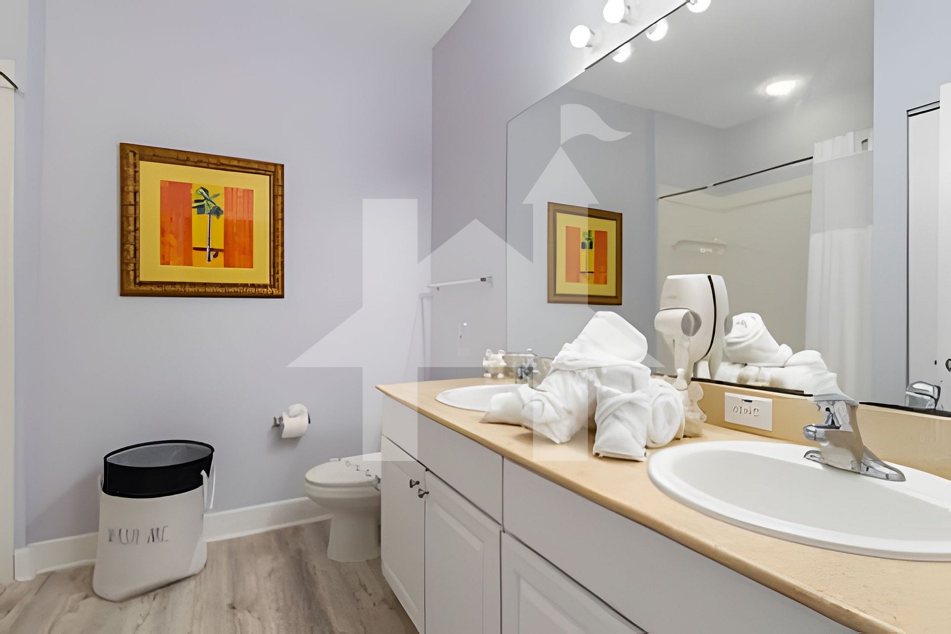 - Quarto com cama de casal- Banheiro completo Andar Superior -Suíte master com cama king e banheiro privativo - Quarto adicional com cama king - Roupeiros amplos e enxoval de qualidade em todos os quartos Todas as casas HoliStays passam por inspeção antes da chegada para garantir qualidade e conforto. Desde a primeira mensagem até o dia do check-out, nossa equipe está disponível para ajudar com qualquer necessidade dicas de restaurantes, orientações para os parques, transporte ou pedidos especiais. Reserve com confiança e deixe o resto com a gente.