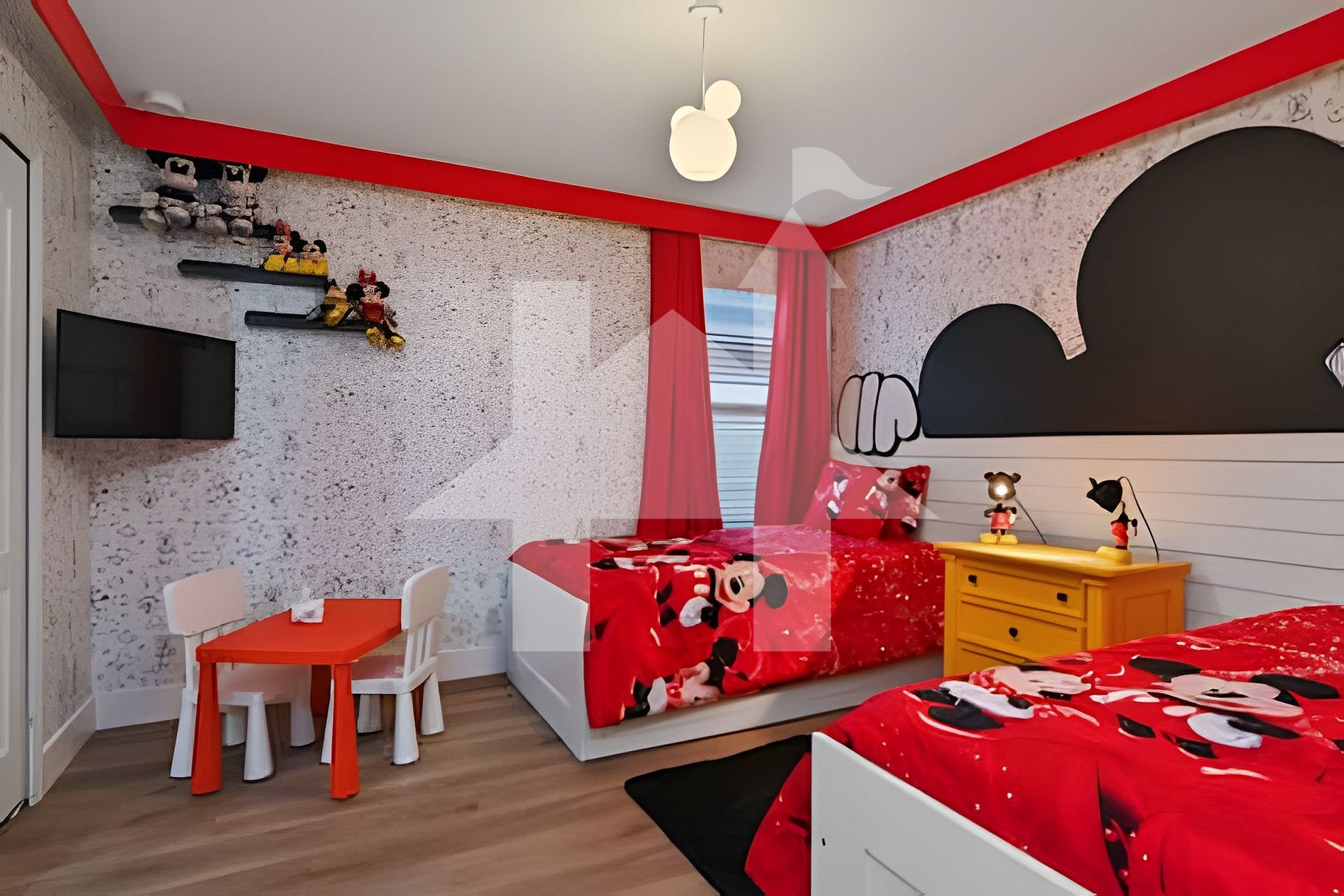 Discover the magic of Orlando in this luxurious 9-bedroom villa, each room uniquely themed for an immersive experience. Relax in the private pool after a day of fun, or take a short walk to the resort's clubhouse, featuring a lazy river, heated pools, gym, and more. Just minutes from Disney, this home is the perfect retreat for families and friends seeking both adventure and relaxation. ☆ Self check in ☆ Champions Gate Resort ☆ Sleeps 21 people Book now for the vacation of your dreams! Welcome to the Dream House in the heart of Orlando! Be the first to stay in this completely renovated home, located in one of the best and most complete resorts in the region. With 9 beautifully decorated bedrooms, each space is designed to provide a unique and immersive experience for you and your family. ☆ Unforgettable Themed Bedrooms: -> Moana: Feel transported to Moana's paradise island, where adventure and natural beauty await. -> Minions: Step into the fun and lively world of the Minions, where laughter is guaranteed. -> Mickey Mouse: Experience Disney magic in the Mickey room, where nostalgia meets classic charm. -> Frozen: For those who love Frozen, our themed room makes you feel like you’re in the icy kingdom of Arendelle. ☆ Bedroom Layout: Bedroom 1 (Suite): 1 King bed Bedroom 2: 1 King bed Bedroom 3: 1 King bed Bedroom 4: 2 Twin beds Bedroom 5: Bunk bed (twin/twin) Bedroom 6: 1 King bed Bedroom 7: Bunk bed (twin/twin), 1 Twin bed Bedroom 8: 2 Twin beds Bedroom 9: 2 Twin beds, 1 Queen bed ☆ Fun and Relaxation: The house is a true haven for families seeking fun and relaxation. Enjoy your private pool, perfect for cooling off after a day of Orlando's theme park adventures. With spacious and well-equipped living areas, our home is ideal for gathering the whole family and creating unforgettable memories. ☆ Resort Amenities: Beyond the wonders inside the home, you’ll have access to resort amenities, including leisure areas, restaurants, a gym, a cinema, a lazy river, heated pools, and more. All designed to ensure a perfect stay for everyone. Additional Services (before check-in): Heated Pool: $60 per night Grill: $70 for the entire reservation Pack and Play (portable crib): $10 per night Book now and get ready for the experience of your dreams!