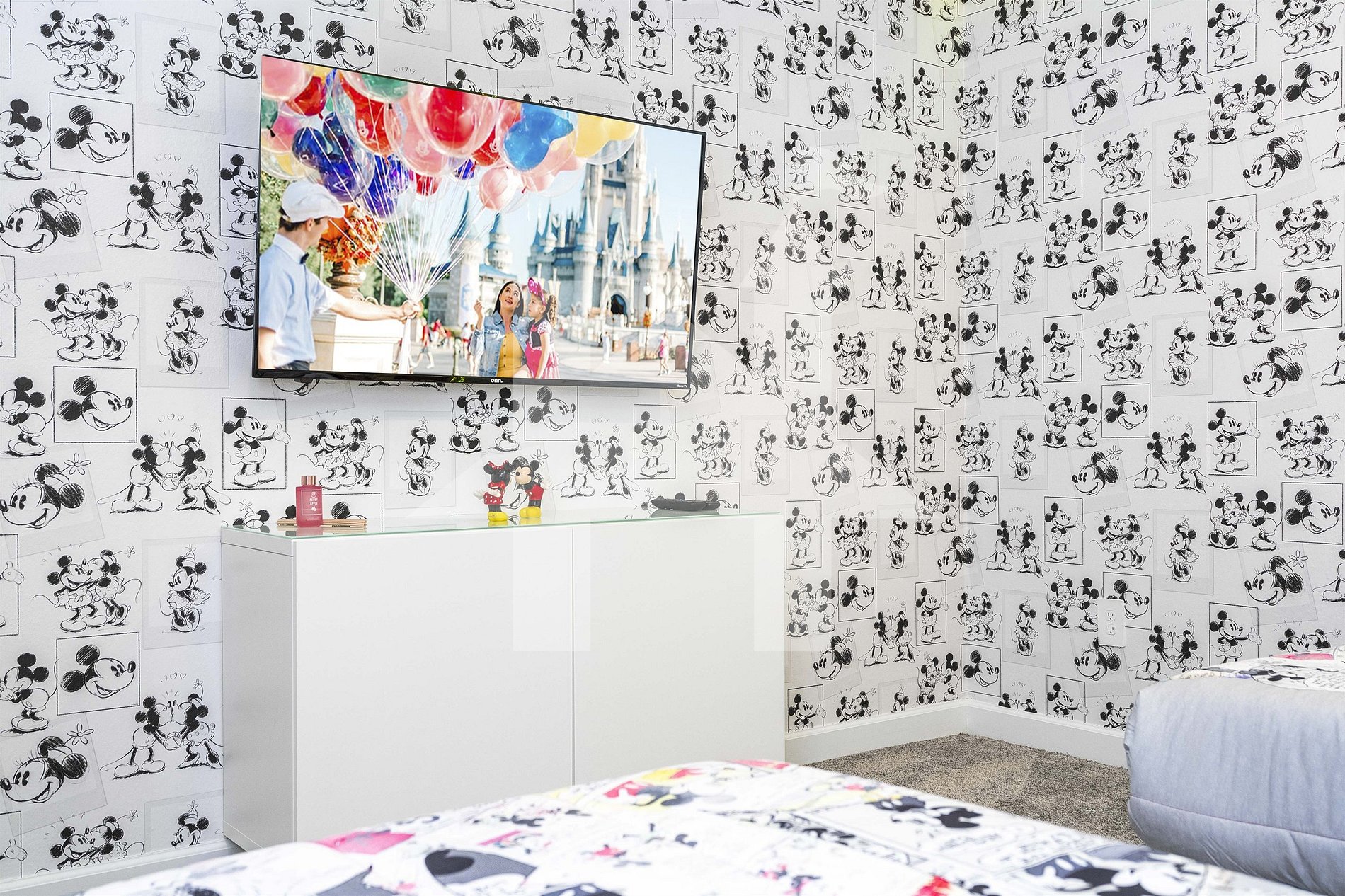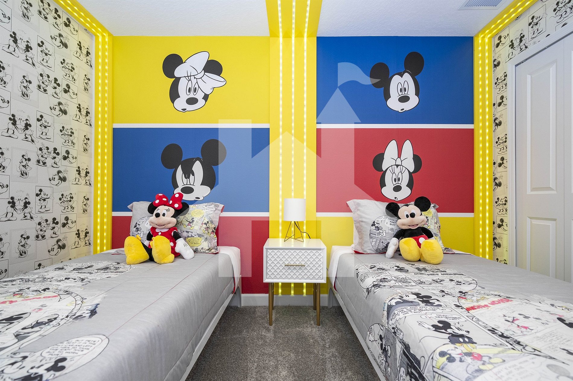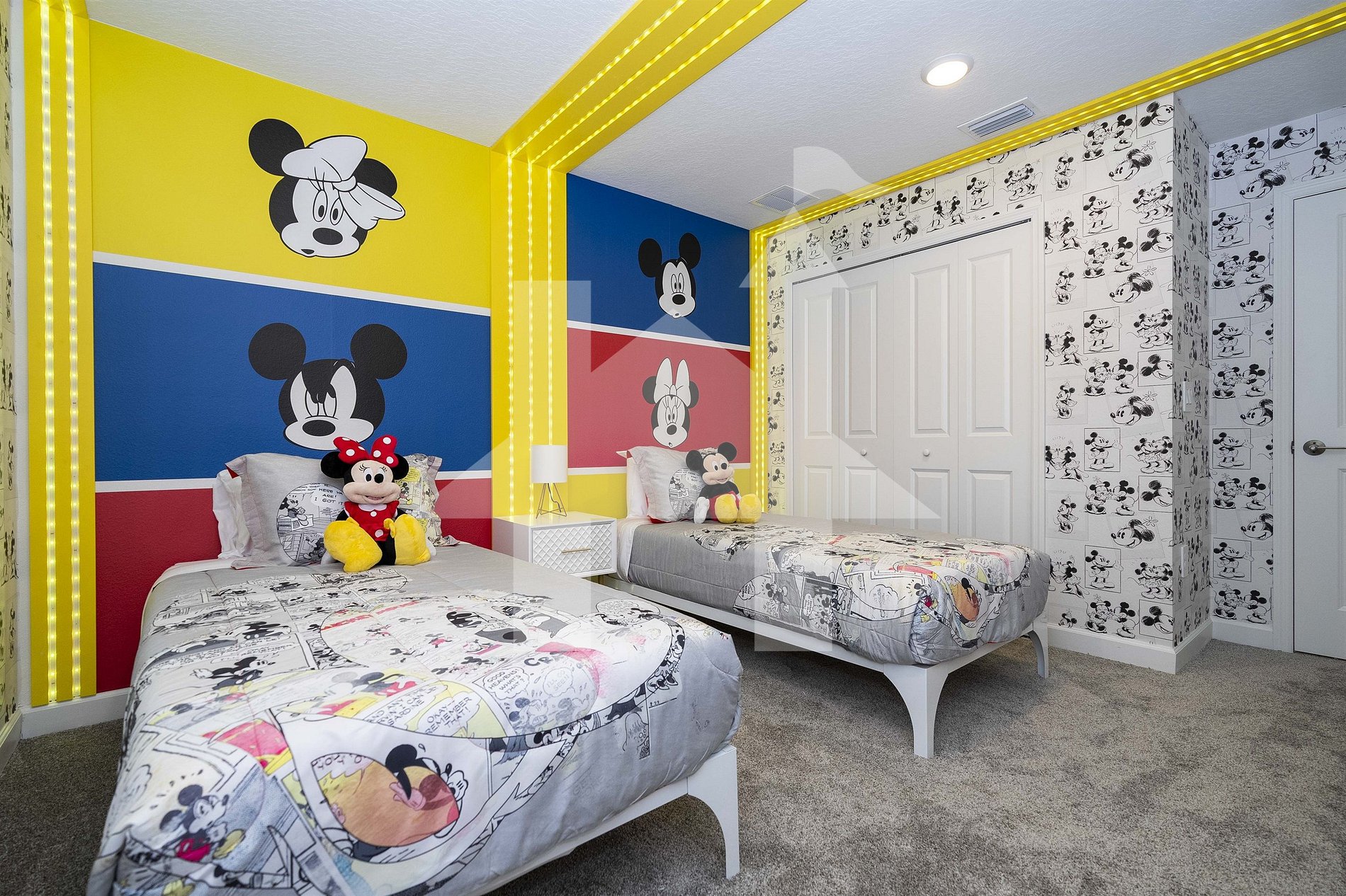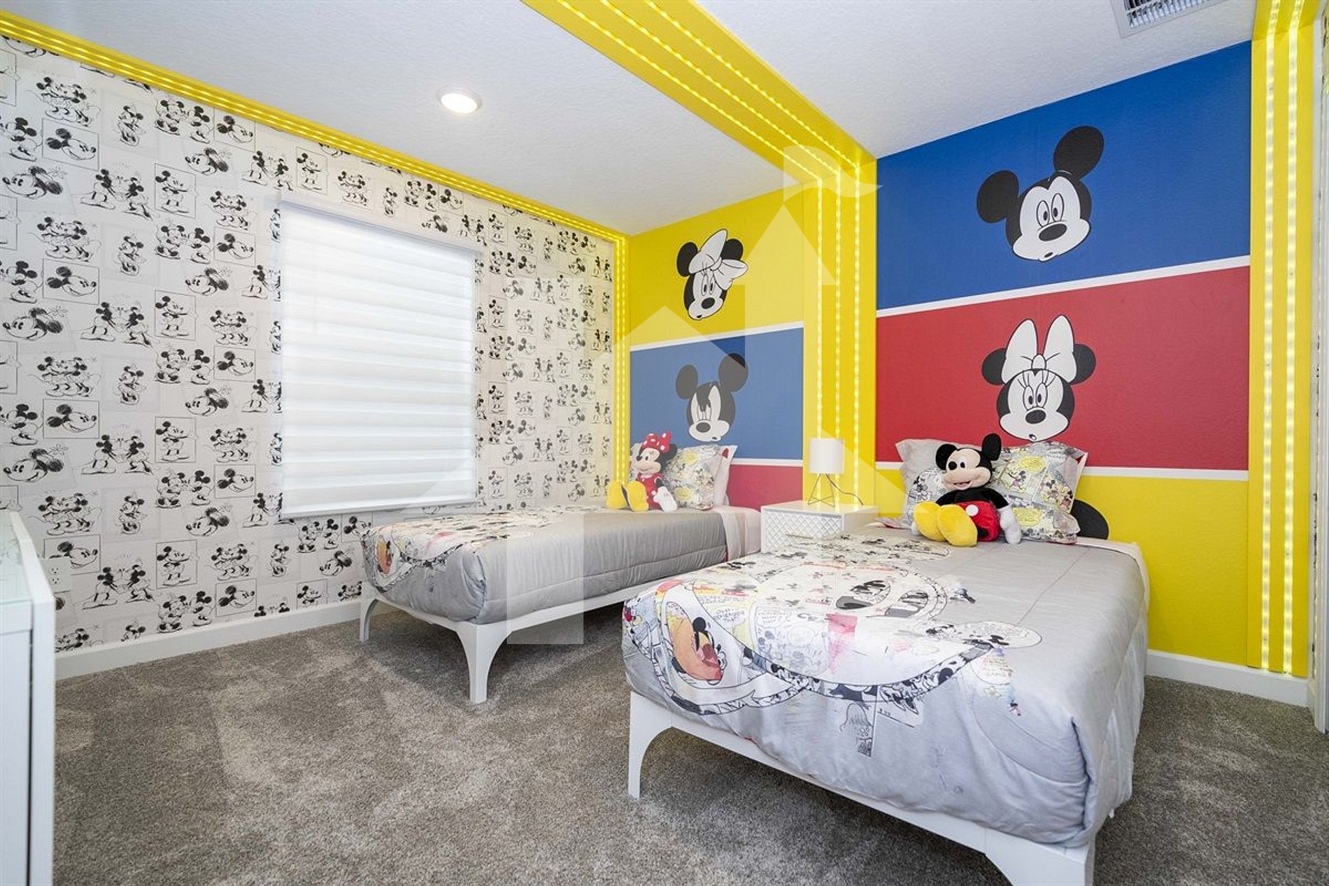 Quarto Mickey Mouse: Duas camas de solteiro, TV SMART, banheiro completo compartilhado