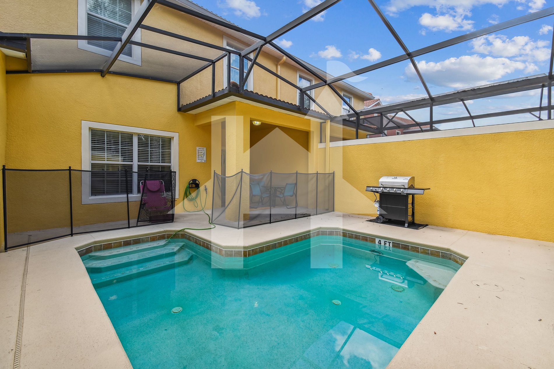 Descubra o refúgio perfeito em nossa casa de 4 quartos e 3 banheiros no resort Paradise Palms, a apenas 15 minutos da Disney! Aproveite a piscina privativa, Wi-Fi rápido, cozinha completa, check-in automático e todas as comodidades de um condomínio de alto padrão. Ideal para famílias, o resort oferece atividades como piscina com toboágua, academia, quadras esportivas e cinema. Não perca essa chance de relaxar e se divertir com todo o conforto e segurança de uma comunidade fechada 24h!