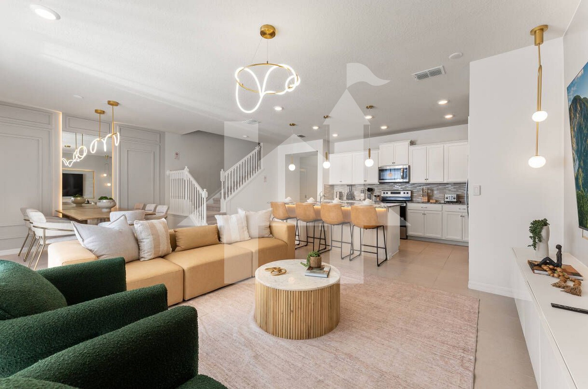 Construída em 2023, esta elegante casa de dois andares conta com 5 quartos, 4,5 banheiros e acomoda até 13 hóspedes. Localizada no condomínio fechado Windsor Island Resort, combina conforto premium e estrutura de resort para famílias e grupos.