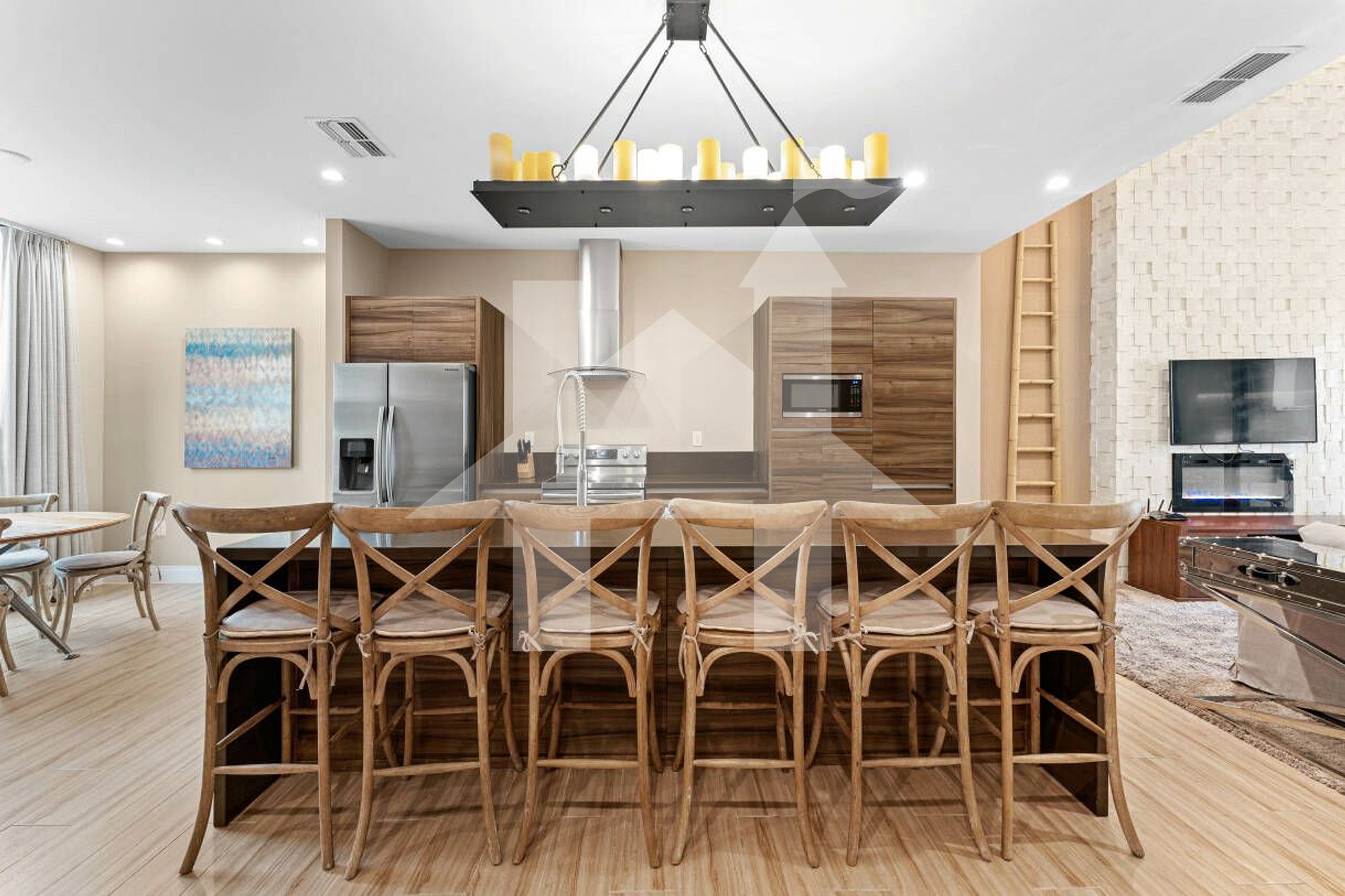 Hóspedes têm acesso total à casa, varandas privativas, churrasqueira (taxa de US$ 100) e ao clubhouse opcional com piscina e lazer.