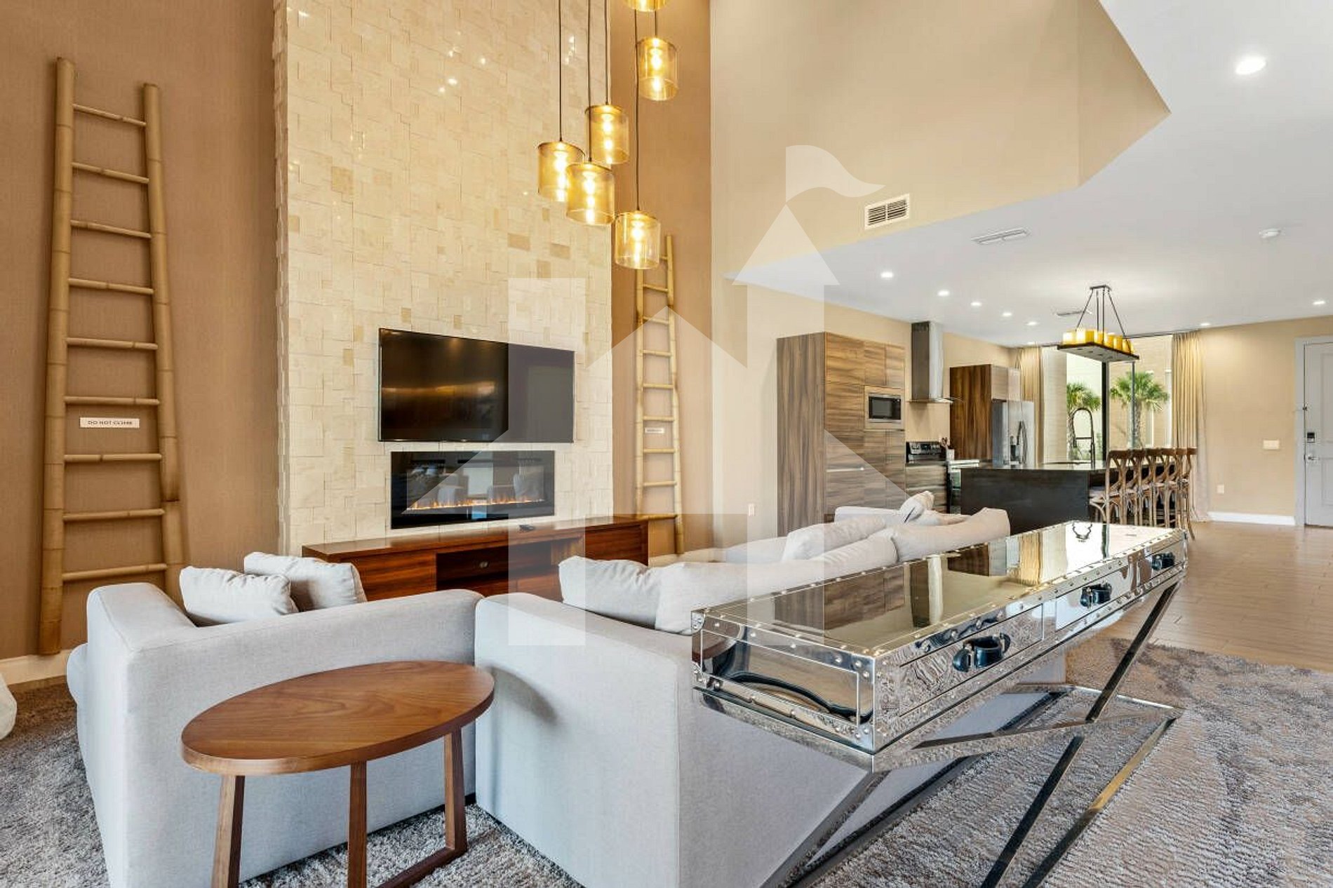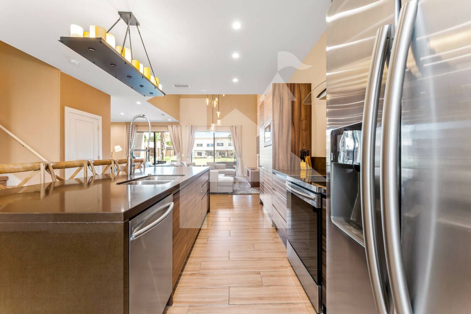 Novo condomínio com casas de arquitetura moderna, Magic Village Views (7594 Bk Dr), com salas de estar de pé-direito duplo, mobília contemporânea e vagas de estacionamento em frente à unidade. Bem localizado, próximo à US-192 e diversas opções de lazer, como cinemas, restaurantes, parques aquáticos e centros de compras. A apenas 6 minutos dos parques da Disney e 3 minutos de farmácias e do Walmart. Tudo isso a menos de 10 minutos da propriedade.