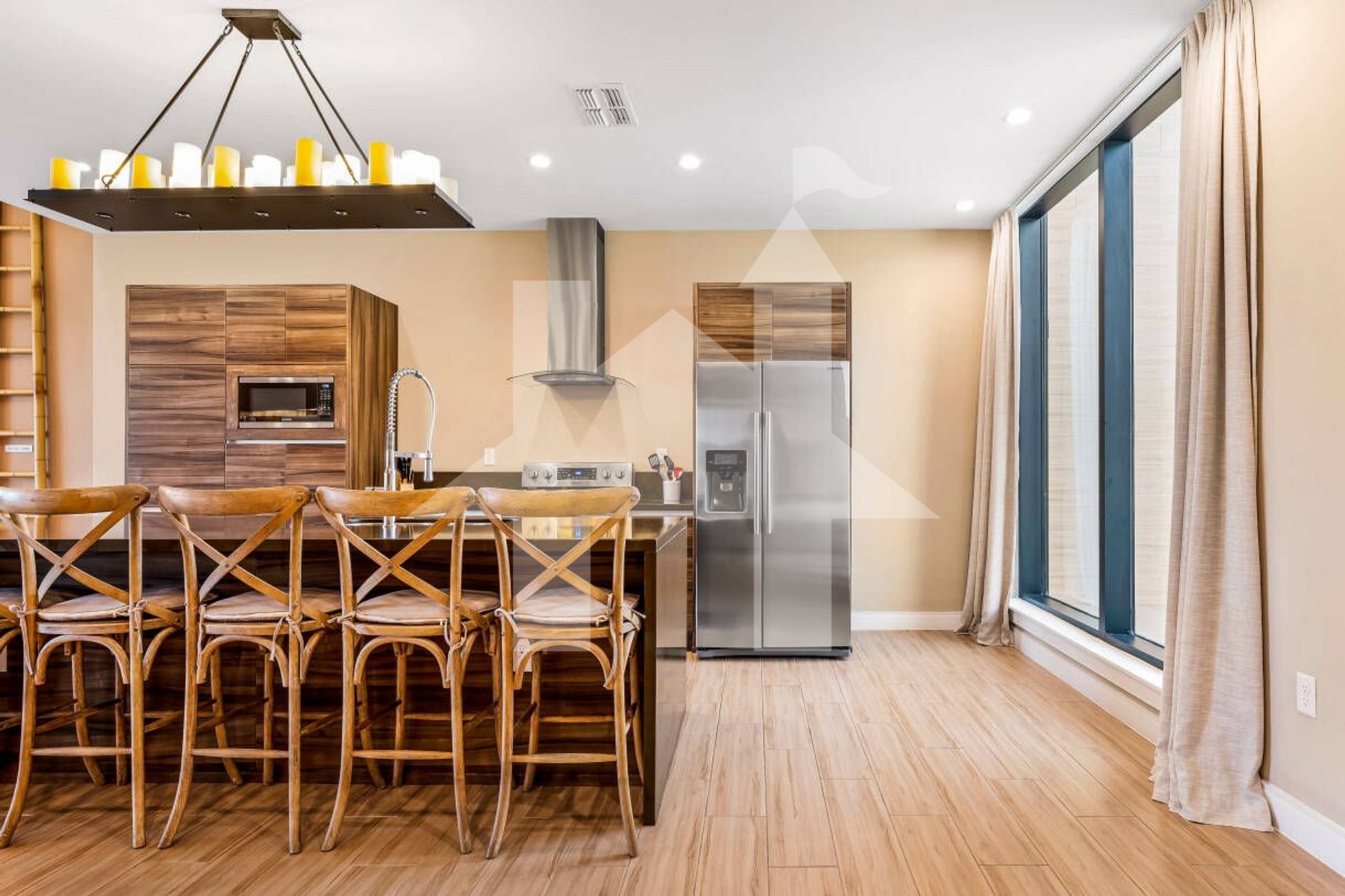 Cozinha completa com balcão e 6 banquetas + mesa de jantar