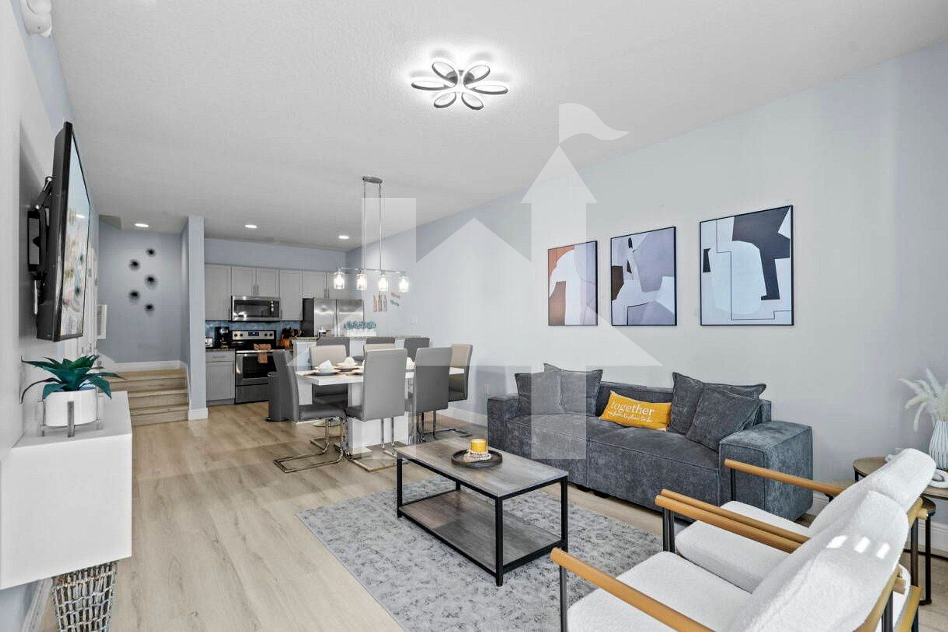 Esta casa lindamente mobiliada e completamente renovada de dois andares está situada no condomínio fechado West Lucaya a apenas 12 minutos dos parques da Disney e a poucos passos de restaurantes, Walmart, Publix e outras conveniências. Com piso vinílico no nível térreo, grandes TVs inteligentes, Wi‑Fi gratuito e acesso ao clube do resort, você vai curtir uma estadia que combina estilo, conforto e praticidade.