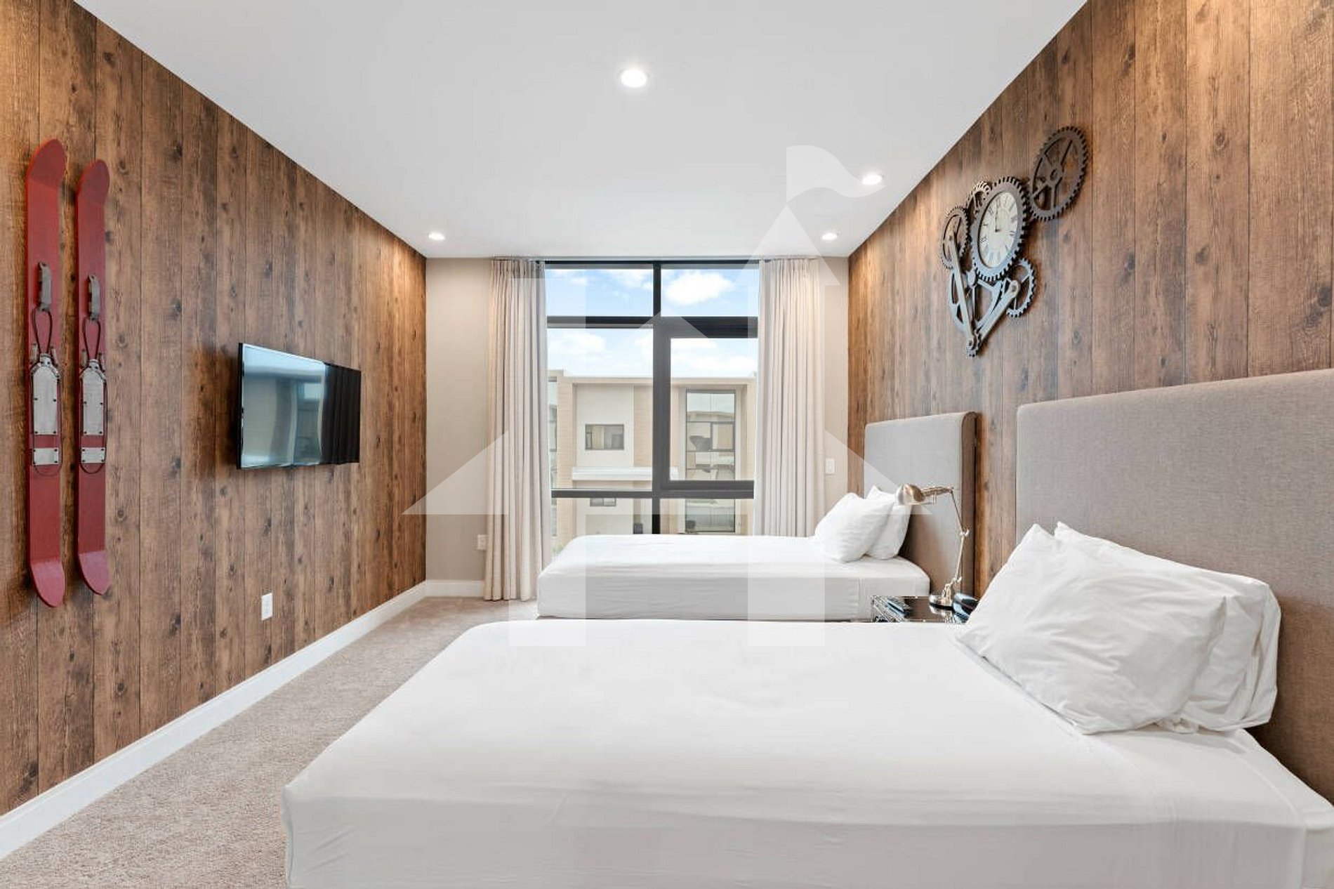 - Quarto com cama king-size, TV de 50 polegadas, banheiro completo, closet e varanda.
