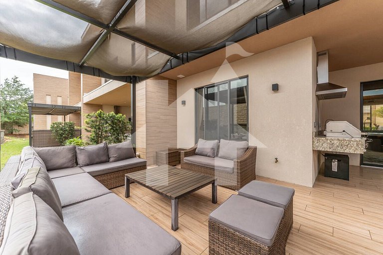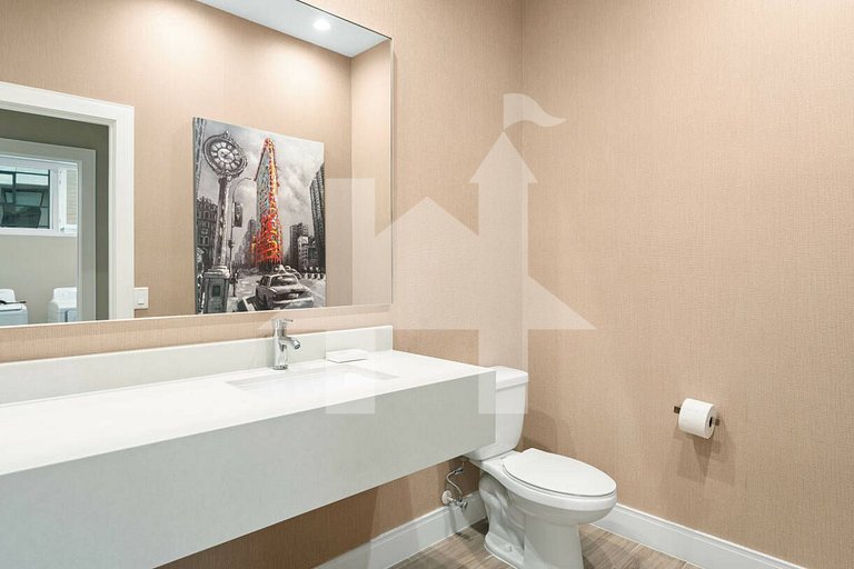 - Cozinha:Totalmente equipada com armários modernos, utensílios e louças. Balcão com 6 cadeiras e área de jantar com mesa para 4.