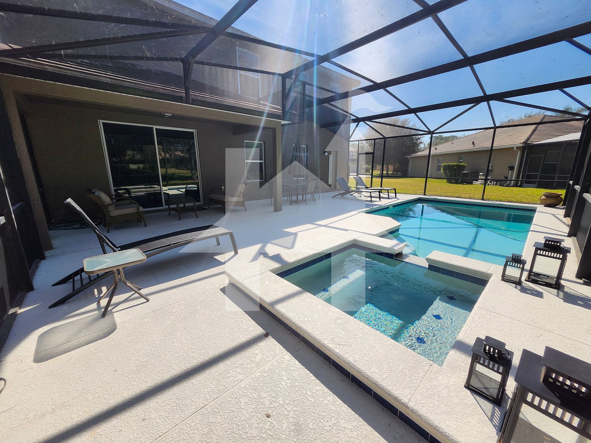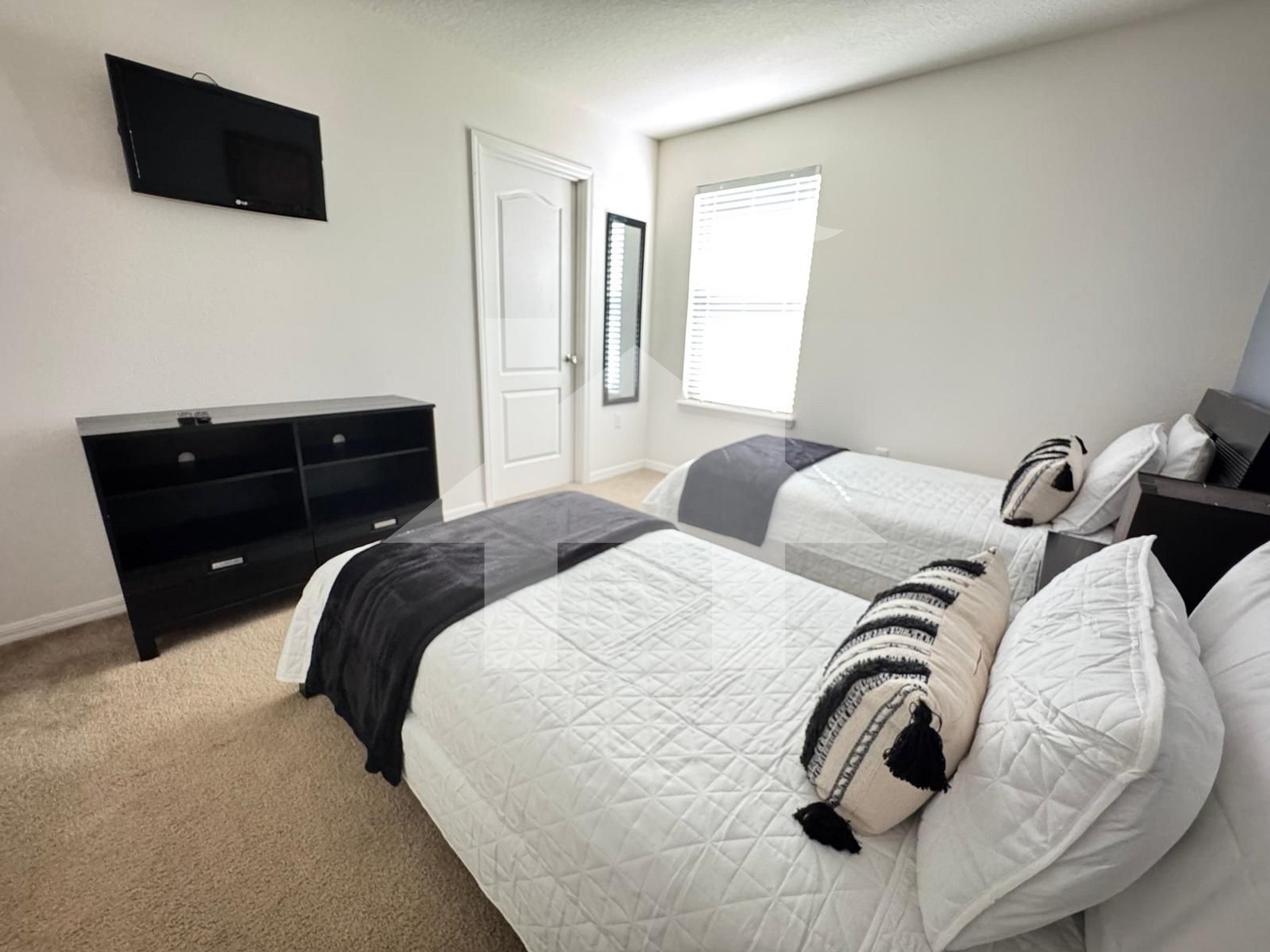 Fantástica casa com 5 quartos e 4,5 banheiros, piscina, perto da Disney, em bairro tranquilo. Com ampla área de lazer, smart TV, 2 salas, cozinha integrada, espaço de trabalho e garagem convertida em sala de jogos com pingue-pongue. Perfeita para relaxar e se divertir!