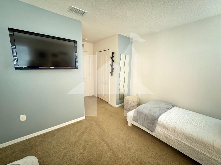 Fantástica casa com 5 quartos e 4,5 banheiros, piscina, perto da Disney, em bairro tranquilo. Com ampla área de lazer, smart TV, 2 salas, cozinha integrada, espaço de trabalho e garagem convertida em sala de jogos com pingue-pongue. Perfeita para relaxar e se divertir!