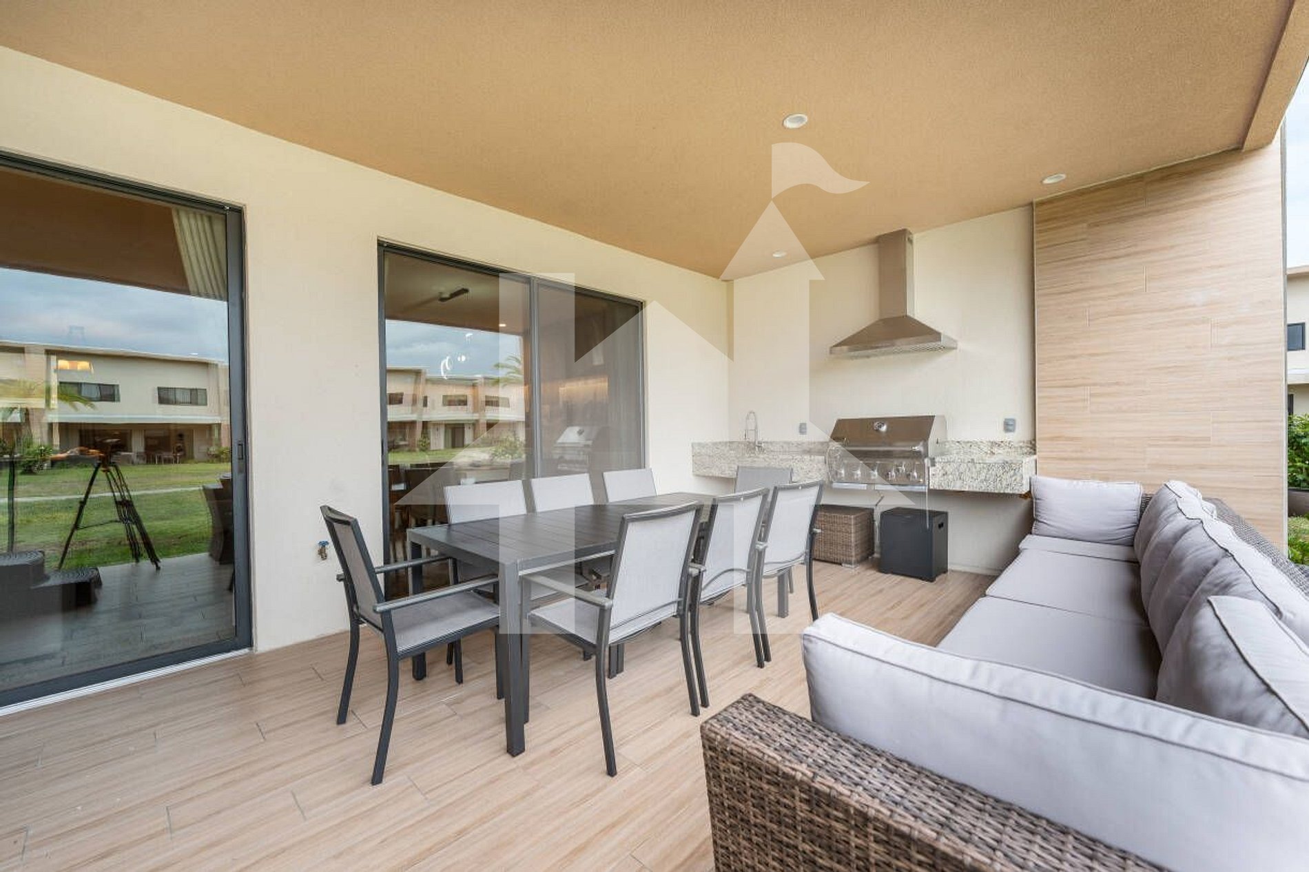- Varanda: Aproveite a varanda ampla, perfeita para relaxar e receber amigos. Este espaço espaçoso inclui uma mesa de jantar para 8 pessoas e sofás confortáveis, proporcionando um ambiente ideal para descontrair e curtir o ar livre.